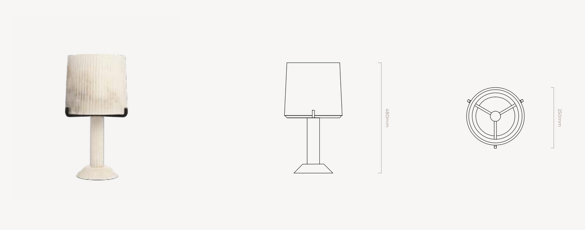 Lampa stołowa Acropolis marki CTO Lighting, posiada klosz z alabastru z unikalnym żyłkowaniem co powoduje, że nie ma dwóch takich samych lamp. Niektóre są prawie białe, inne mają szare żyłki. Wymiary: ø 25 x wys.48 cm