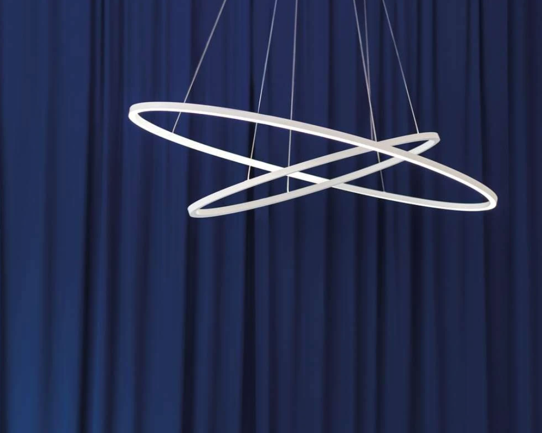 Lampa wisząca Ellisse Double marki Nemo Lighting, gwarantuje rozproszone bezpośrednie i pośrednie światła dzięki diodom LED umieszczonym w strukturze, pozostając jednocześnie dyskretnym. Wymiary: H:45 Ø:220; 15 x 80 x1 50 cm