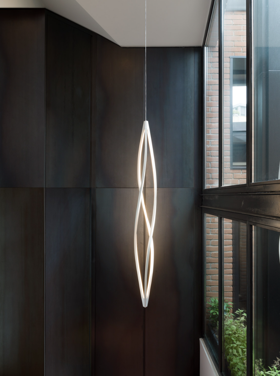 - Lampa The Wind Vertical marki Nemo Lighting, wykonana z wytłaczanego aluminium, skręcanie poza osią umożliwia rozproszone oświetlenie 360°. Dyfuzory z opalowego metakrylanu, końce z odlewanego ciśnieniowo aluminium.