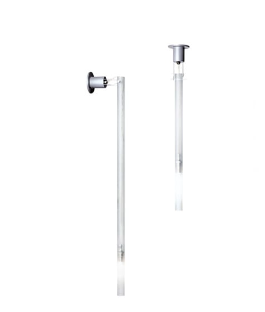 Kinkiet Canna Nuda Metalo marki Nemo Lighting, bada rozproszenie światła poprzez zastosowanie cylindrów w wersji z piaskowanego szkła, oświetlenia punktowego w wersji metalowej i orientacji w wariancie sufitowym. Wymiary: śr. 3 cm cm x wys. 50 cm