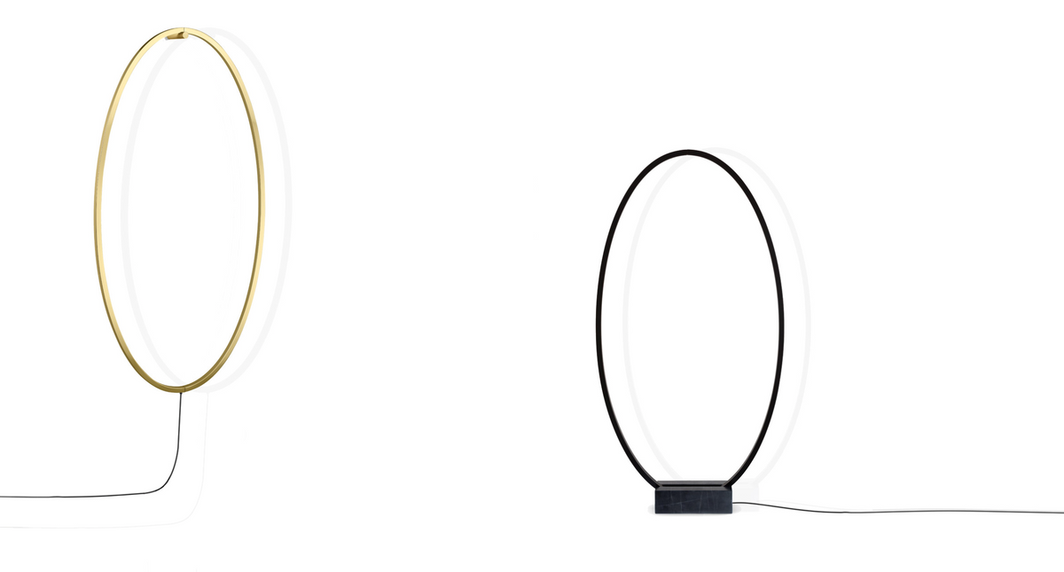 - Lampa podłogowa Ellisse marki Nemo Lighting, gwarantuje rozproszone bezpośrednie i pośrednie światła dzięki diodom LED umieszczonym w strukturze. Posiada podstawę z czarnego marmuru.