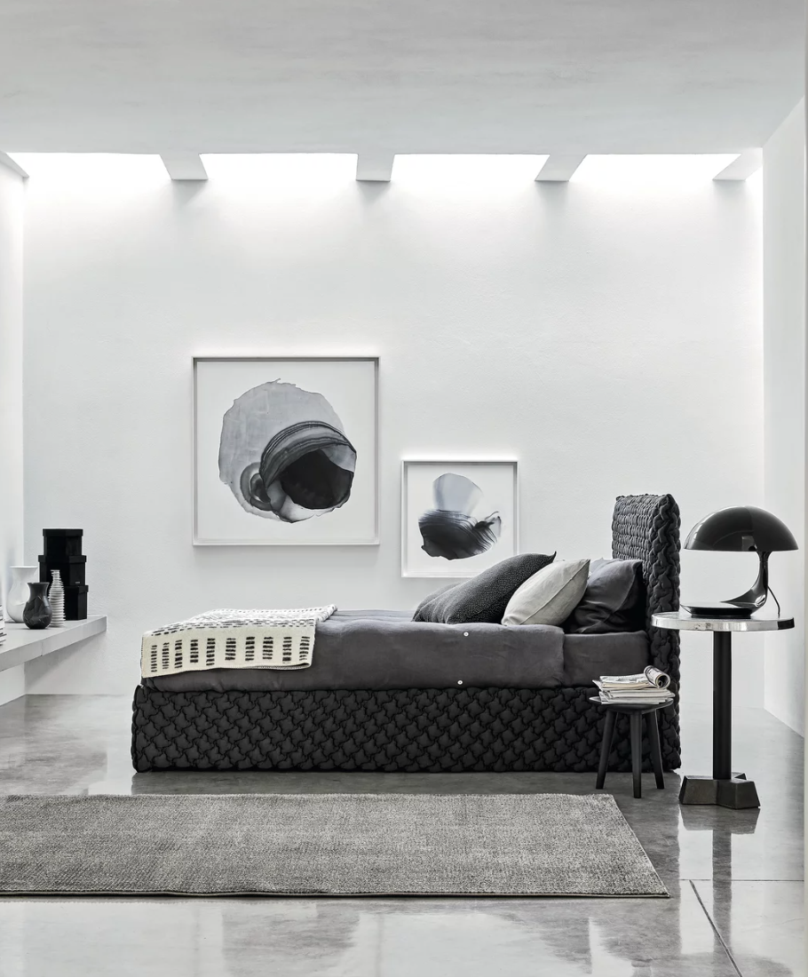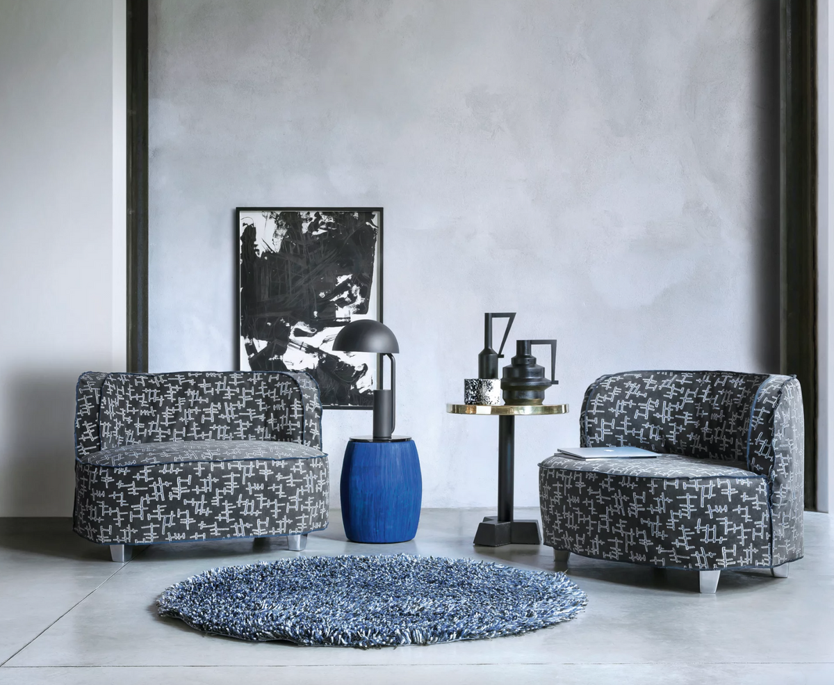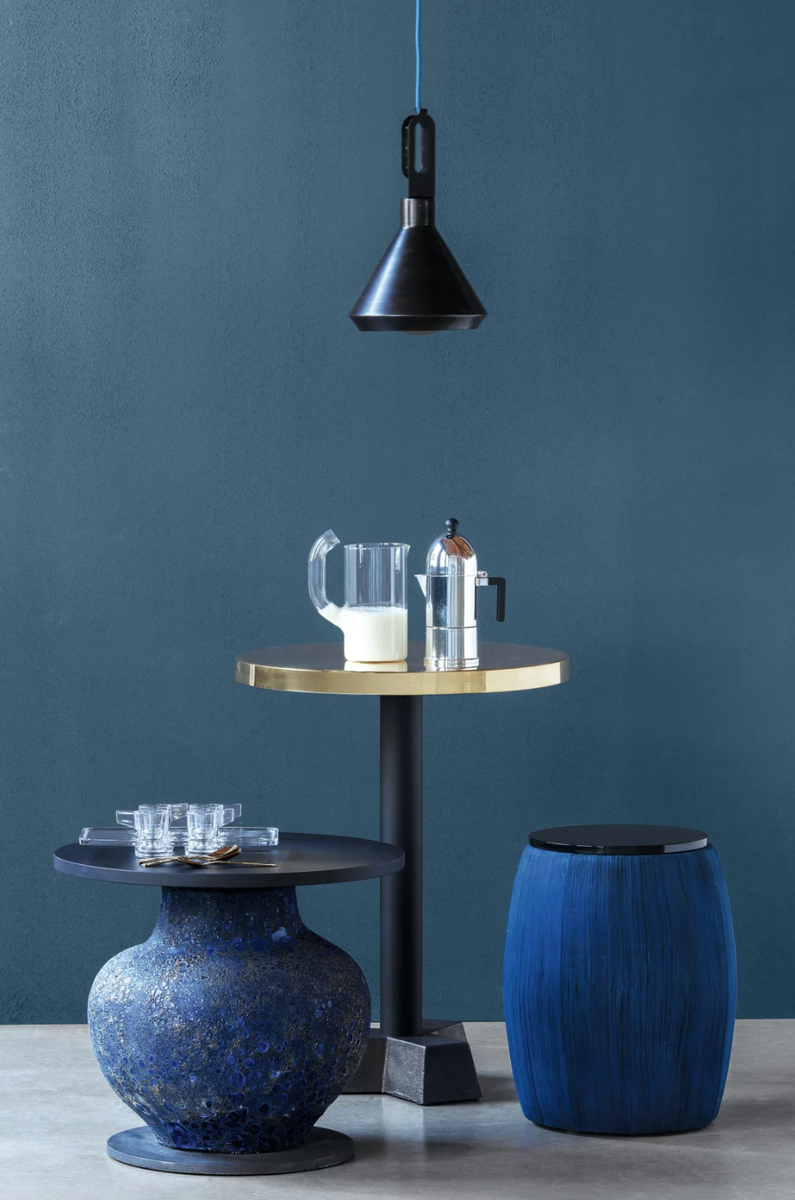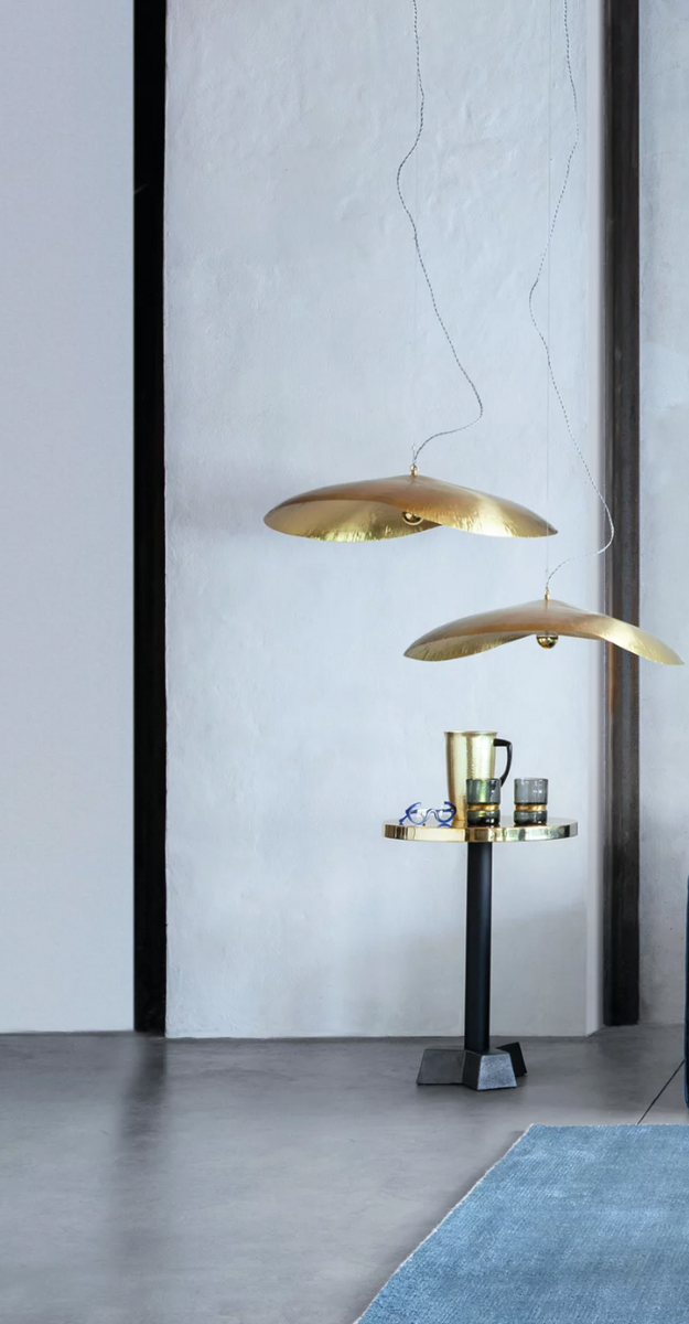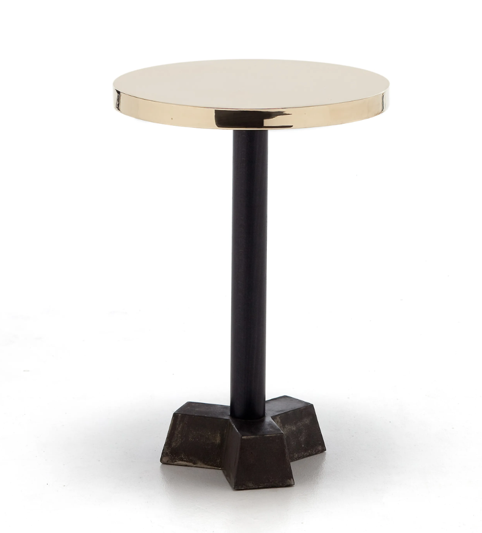 - Stolik kawowy Brass 44 marki Gervasoni 1882, wykonany z żeliwnej podstawy, kolumny z buku barwionego na heban i blatu dostępnego z odlewanego aluminium lub polerowanego mosiądzu.