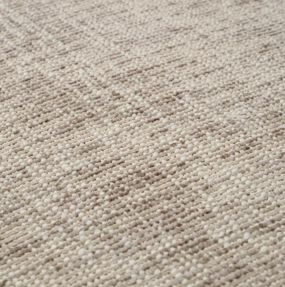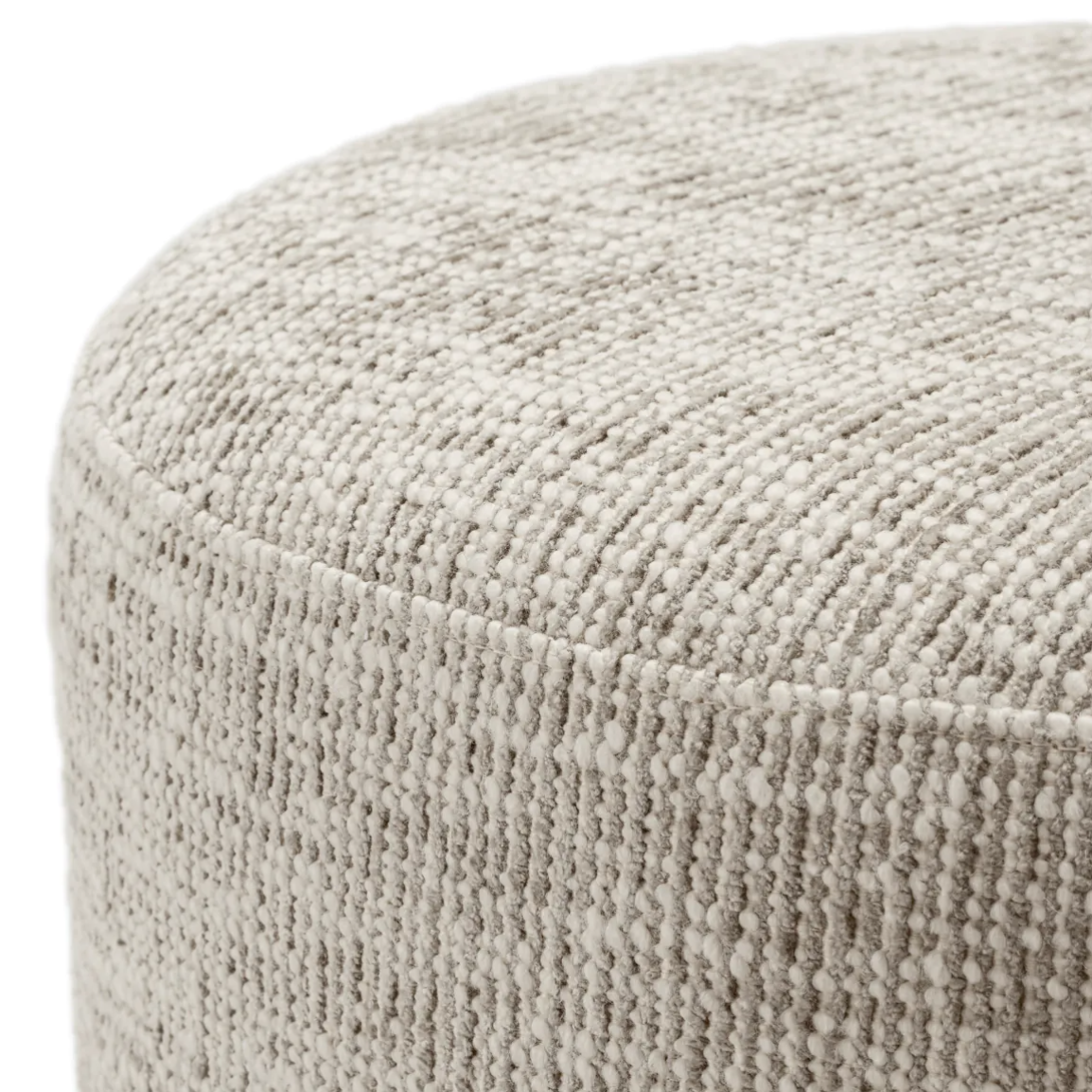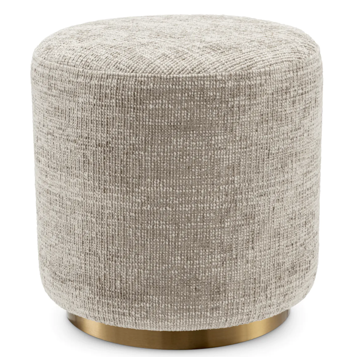 Puf Greer marki Eichholtz z obrotową podstawą w kolorze beżowym Creststone, wykończenie ze szczotkowanego mosiądzu. Skład tkaniny: 42% poliester | 29% akryl | 26% wiskoza | 3% wełna. Wymiary: Ø 48 | H. 50 cm