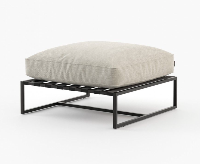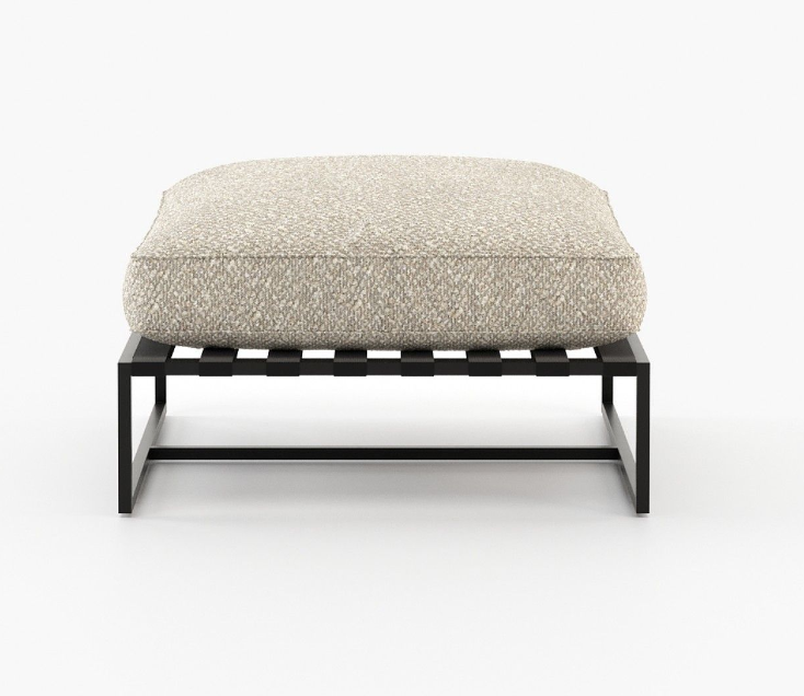 Puf ogrodowy Badi marki Laskasas, posiada żelazną ramę, wykończony tkaniną Andapa Sand, doda uroku każdej przestrzeni. Można wybrać rozmiar, tapicerkę (tkaniny i skóry), materiały (drewno, marmury i metale). Wymiary: 80 x 80 x 39 cm