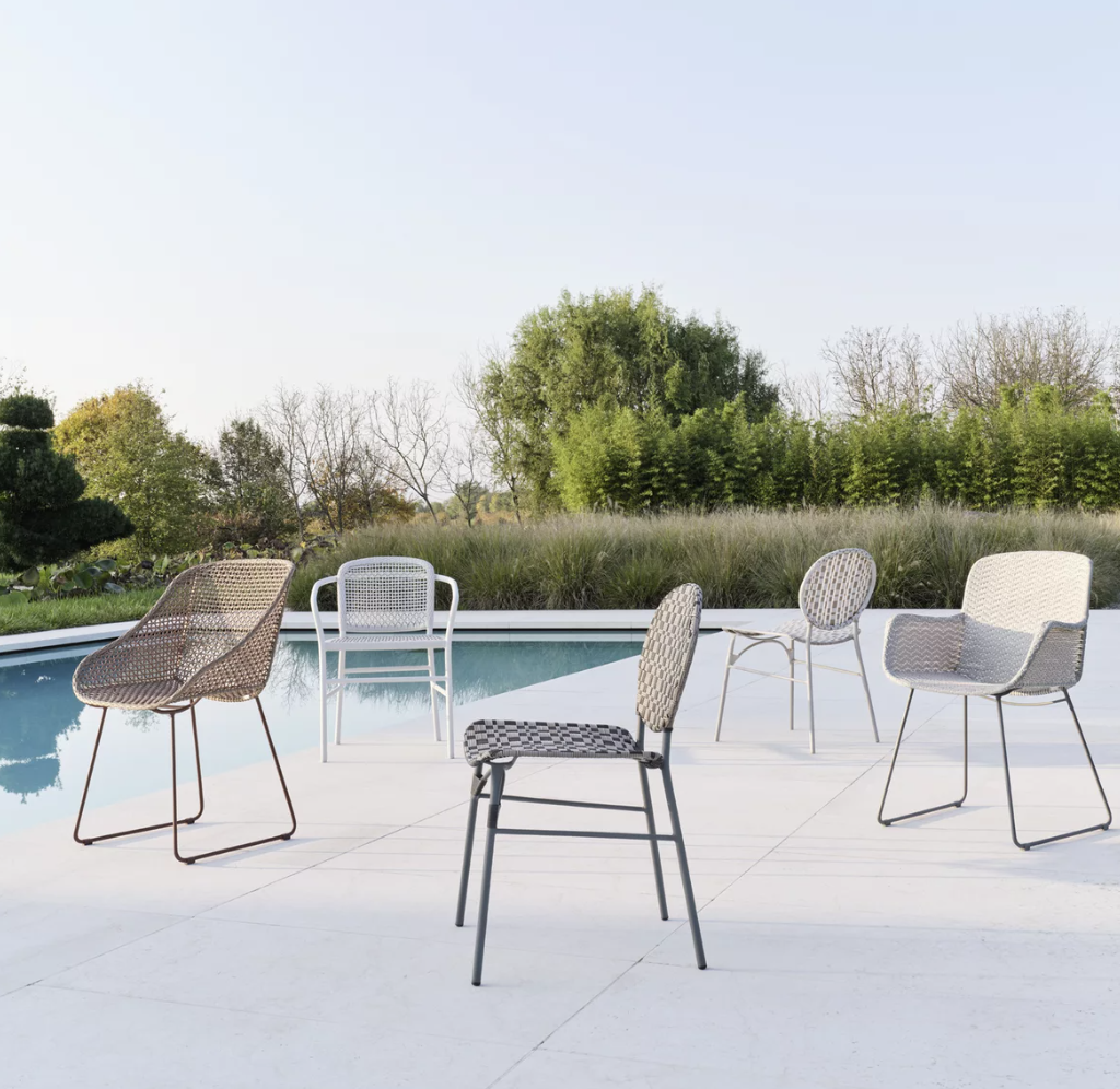 - Krzesło ogrodowe Colette 25 marki Gervasoni 1882, zainspirowane elegancją paryskich bistro. Posiada stalową ramę przystosowaną do użytku na zewnątrz, pomalowaną na matowe wykończenie łupkowe. Wykonane z żywicy Colette.