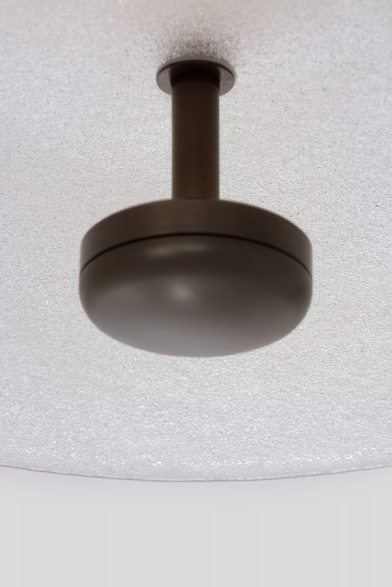 Lampa wisząca Cielo marki CTO Lighting, ręcznie wykonana ze szkła fritted firmy CTO Lighting, dioda LED jest delikatnie rozpraszana przez szklany klosz. Dostępna w małym i dużym rozmiarze w wykończeniu z satynowego mosiądzu lub brązu. Wymiary: SMALL: ø 31,5 x 13 cm; LARGE: ø 38,5 x 13 cm