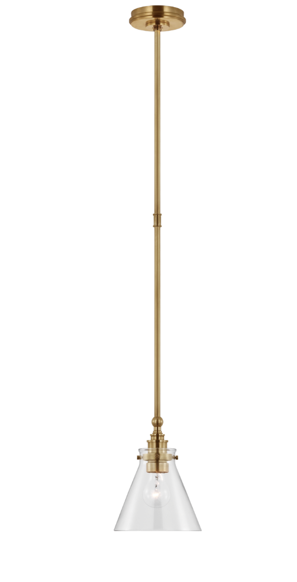 - Lampa wisząca Parkington 9" projektu Chapman & Myers w kolorze szczotkowanego mosiądzu.
