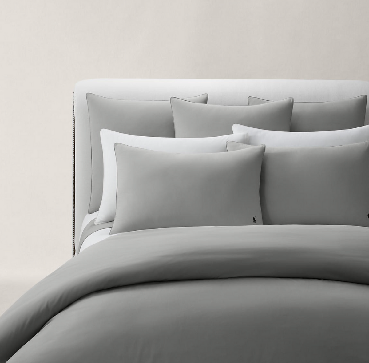 Komplet pościeli Ralph Lauren Home, z kolekcji Player (Andover) została wykonana w 100% z bawełny egipskiej 80 nici / cm². Wykończona kontrastowym kultowym graczem Ralph Lauren Polo.