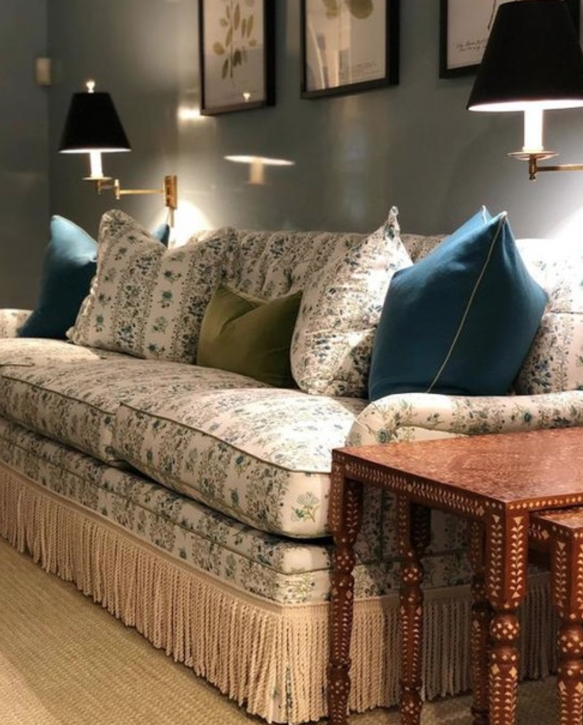 - Kinkiet Dorchester Swing Arm projektu Chapman & Myers marki Visual Comfort z antycznego szczotkowanego mosiądzu, wykończony jedwabnym abażurem. Lampa posiada gniazdo na żarówkę E 27.