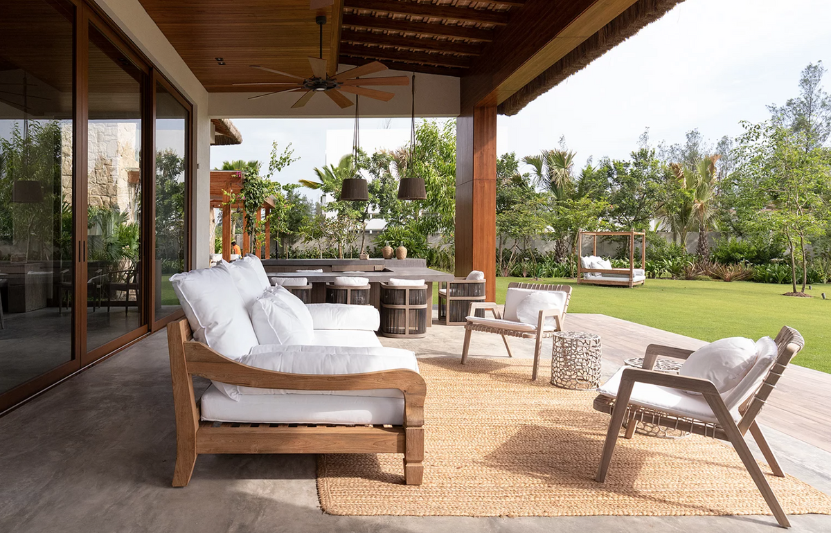 - Sofa Jeko 04 marki Gervasoni 1882, posiada ramę z ECOTeak, charakteryzuje się niskim a zarazem szerokim siedziskiem ze zdejmowaną poszewką, do której można dodać luźne poduszki w celu zwiększenia komfortu.