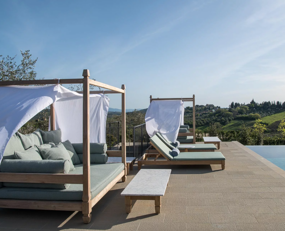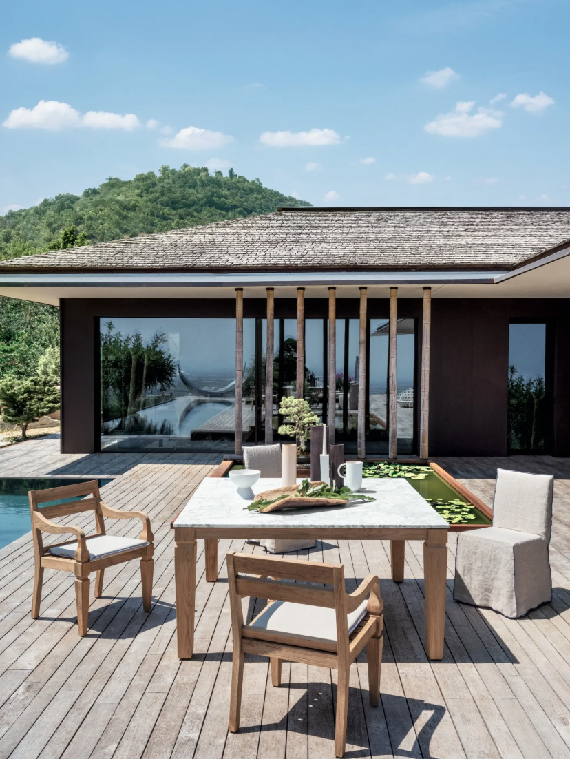 - Stolik kawowy Jeko 31 marki Gervasoni 1882, wykonany z drewna tekowego z blatem z listew, jest również dostępny z blatem z białego marmuru Carrara lub betonu w kolorze Pearl.