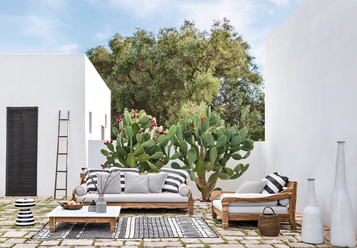 Stolik kawowy Jeko 31 marki Gervasoni 1882, wykonany z drewna tekowego z blatem z listew, jest również dostępny z blatem z białego marmuru Carrara lub betonu w kolorze Pearl. Wymiary: szer. 150 x dł.150 x wys. 75 cm