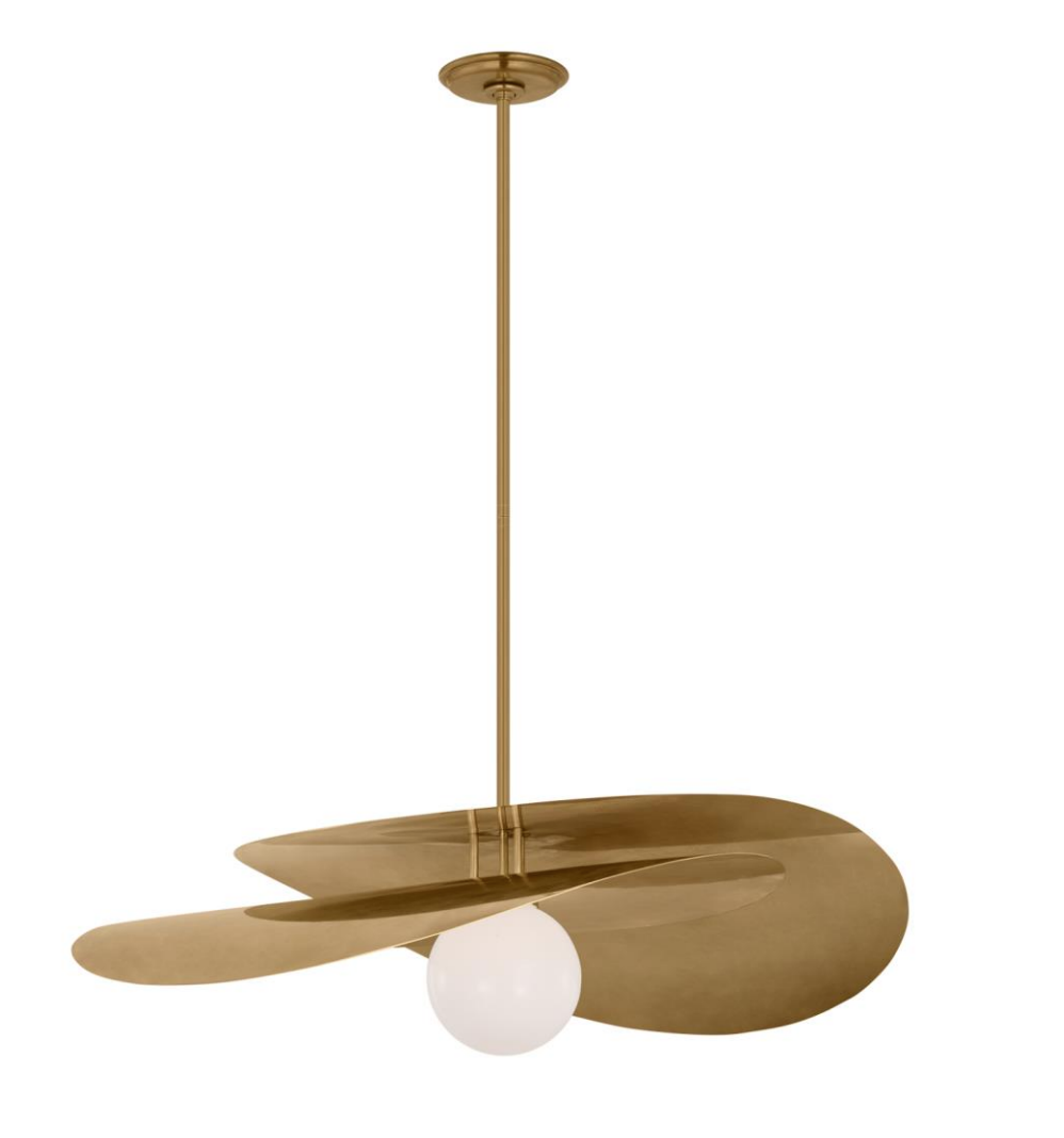 - Żyrandol Mahalo 32" projektu Windsor Smith z ręcznie nacieranego antycznego mosiądzu z białym szkłem.