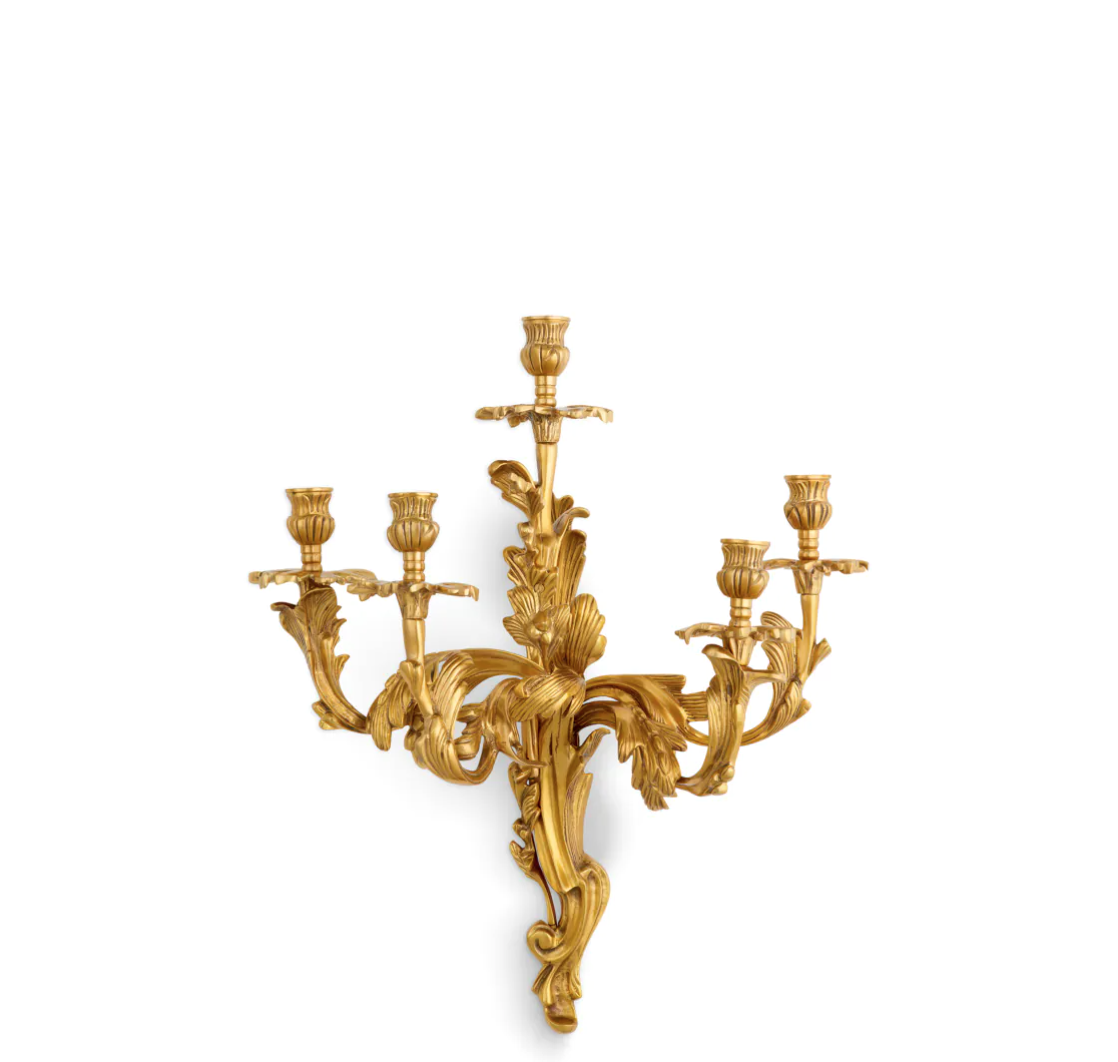• Świecznik ścienny Lumière marki Eichholtz w kolorze postarzanego złota, misterne detale przywołują bogactwo okresu rokoko, dodając odrobinę historycznej elegancji do każdego wnętrza.