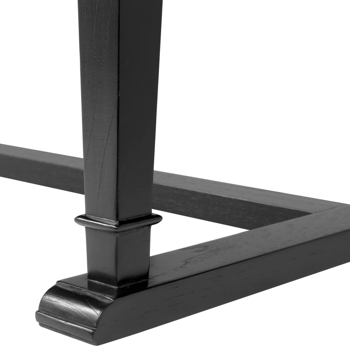 - Stół Americana marki Eichholtz, wykonany z czarnego forniru, emanuje ponadczasową elegancją. Jego historyczny urok płynnie łączy się ze współczesną estetyką.