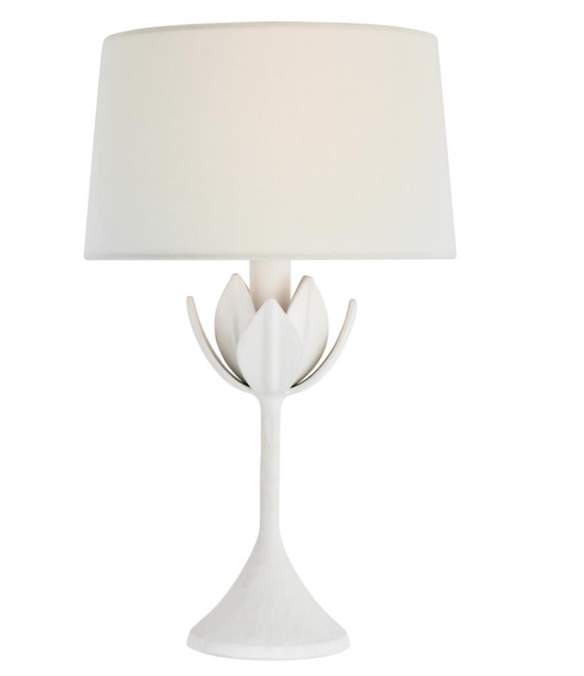 - Lampa stołowa bezprzewodowa Alberto 17" projektu Julie Neill marki Visual Comfort w kolorze białym z lnianym abażurem.