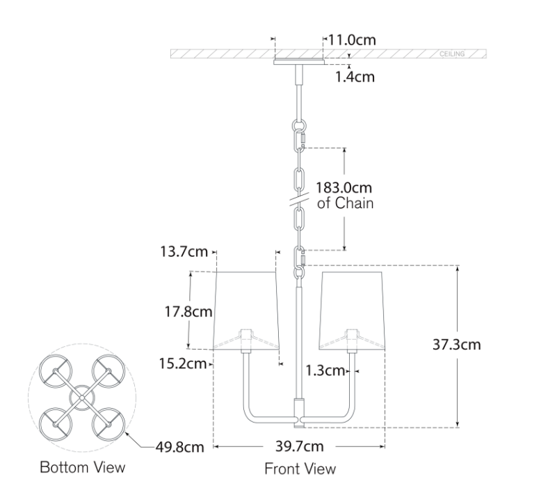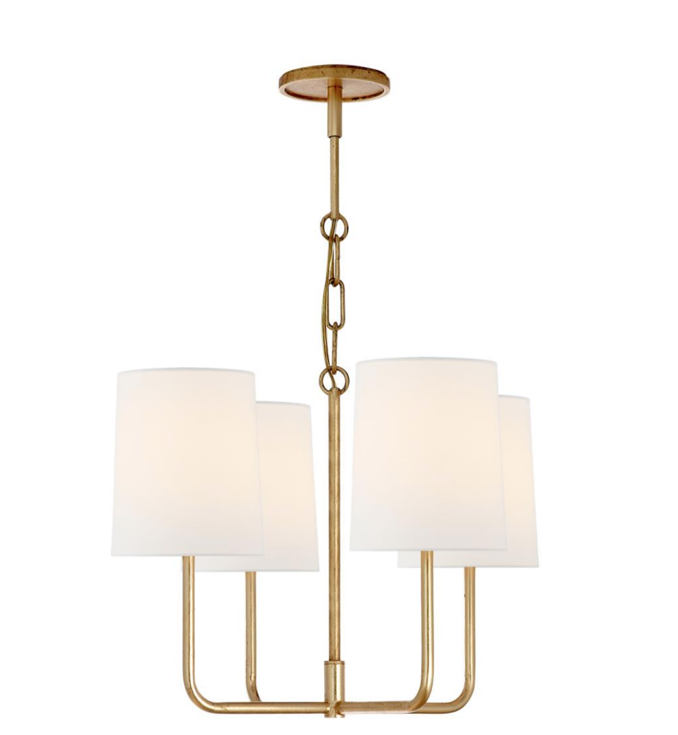 Żyrandol Go Lightly Small Barbara Barry marki Visual Comfort został wykonany z metalu w złotym kolorze, posiada cztery ramiona w klasycznym kształcie kandelabru oraz lniane abażury. Wymiary: wys. 37.5 x szer. 40 x baldachim 10.8 cm