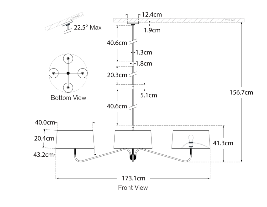 • Wymiary: wys. 156.7 x szer. 172.7 x baldachim 12.4 cm