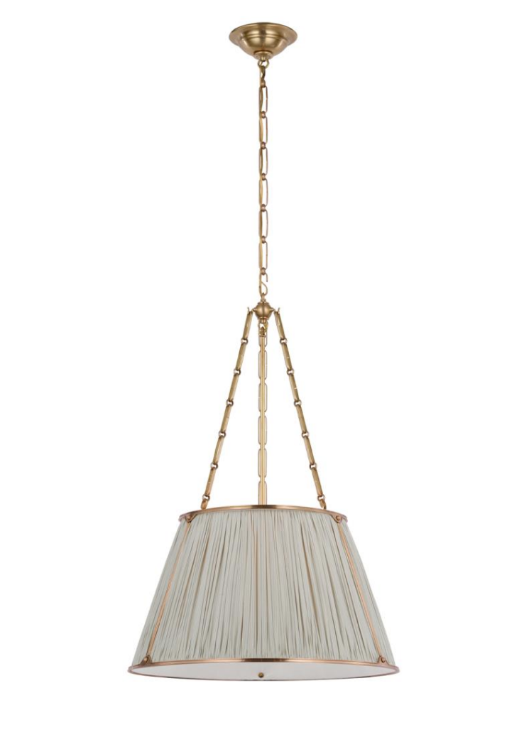 - Lampa wisząca Allister 21" projektu Schumacher marki Visual Comfort wykonana z ręcznie szczotkowanego antycznego mosiądzu z abażurem Blue Charee Stripe Plead.