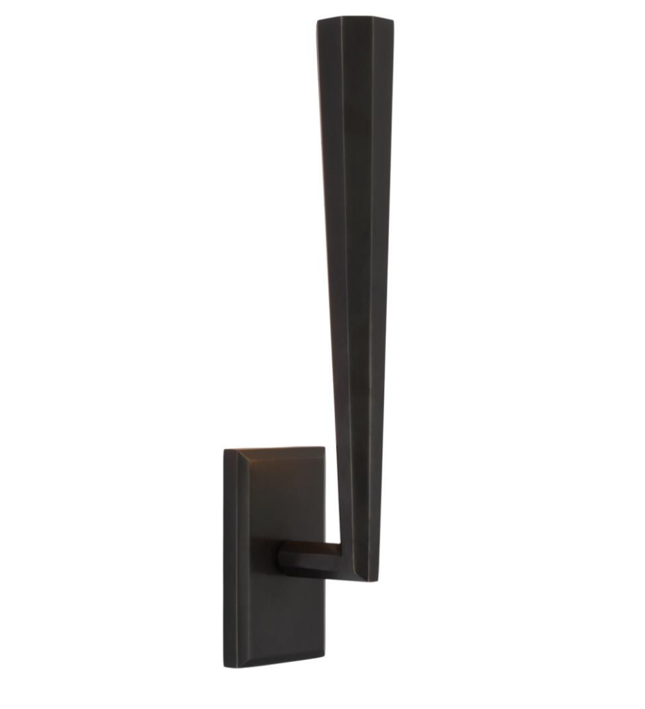 Kinkiet Galahad projektu Thomas O'Brien marki Visual Comfort w kolorze brązowym. Wymiary: wys. 37,5 x szer. 7,6 cm