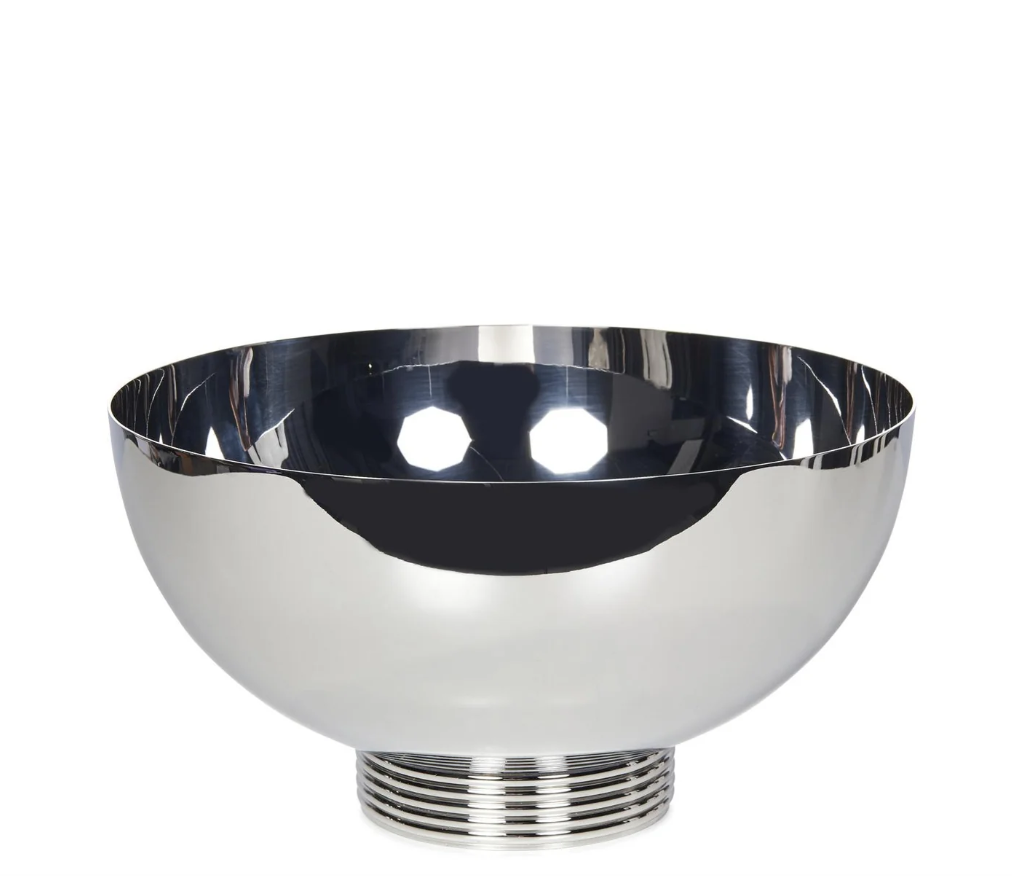 Misa Thorpe Large marki Ralph Lauren Home wykonana ręcznie z litej stali nierdzewnej z błyszczącym polerowanym wykończeniem, ma żebrowane paski przypominające kultowy fotel Hudson St. Ralpha Laurena. Myć ręcznie. W zestawie pudełko prezentowe. Wymiary: Ø 33 cm x wys. 16,5 cm
