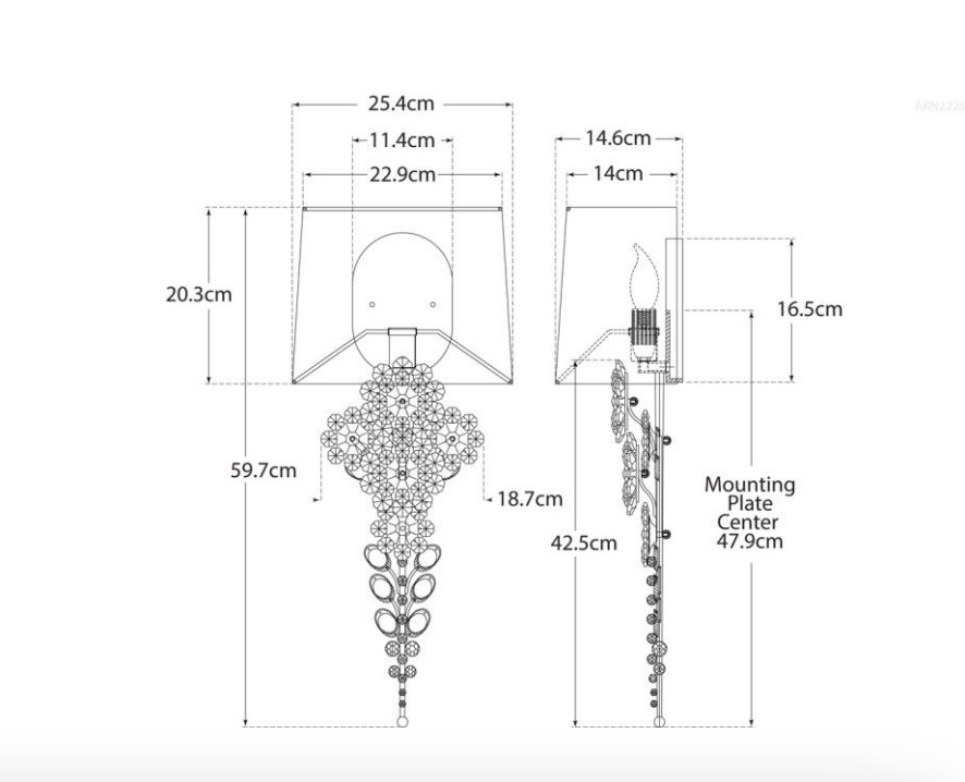 - Kinkiet Claret Tail projektu Aerin marki Visual Comfort w kolorze srebrnym, posiada lniany abażur oraz kryształy w kwiatowe motywy zdobiące rzeźbioną ramę. Rzucane światło dodaje charakteru wnętrzu.