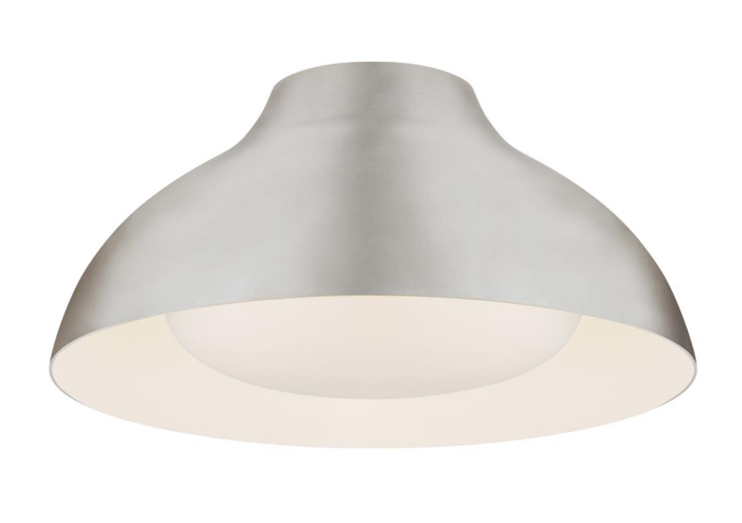Plafon Agnes 15" projektu Aerin marki Visual Comfort w kolorze polerowanego srebra z delikatnym białym szkłem. Wymiary: wys. 17.8 x szer. 38.1 cm