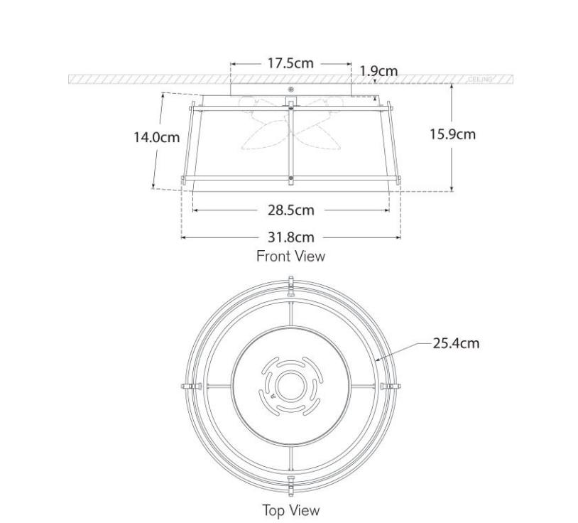 Plafon Callaway Small projektu Carrier and Company marki Visual Comfort posiada lniany bębnowy abażur zawieszony na konstrukcji ze antycznego mosiądzu. Odsłonięte śruby podkreślają utylitarną estetykę. Wymiary: wys. 15.2 cm x szer. 31.8 cm