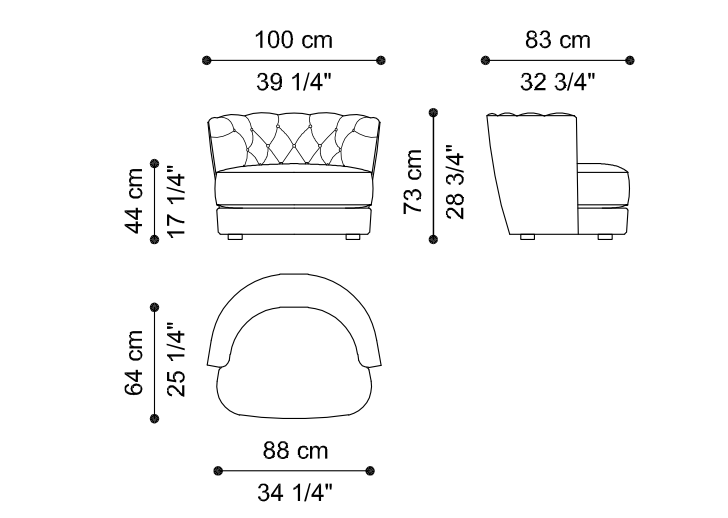 Fotel Limbo marki Roberto Cavalli Home Interiors ma zwartą i otulającą formę, wyróżnia się oparciem w stylu capitonné. Posiada konstrukcję z drewna topolowego i pianki. Tapicerka z tkaniny kat. A. Wymiary: dł. 100 x szer. 83 x wys. 73 cm