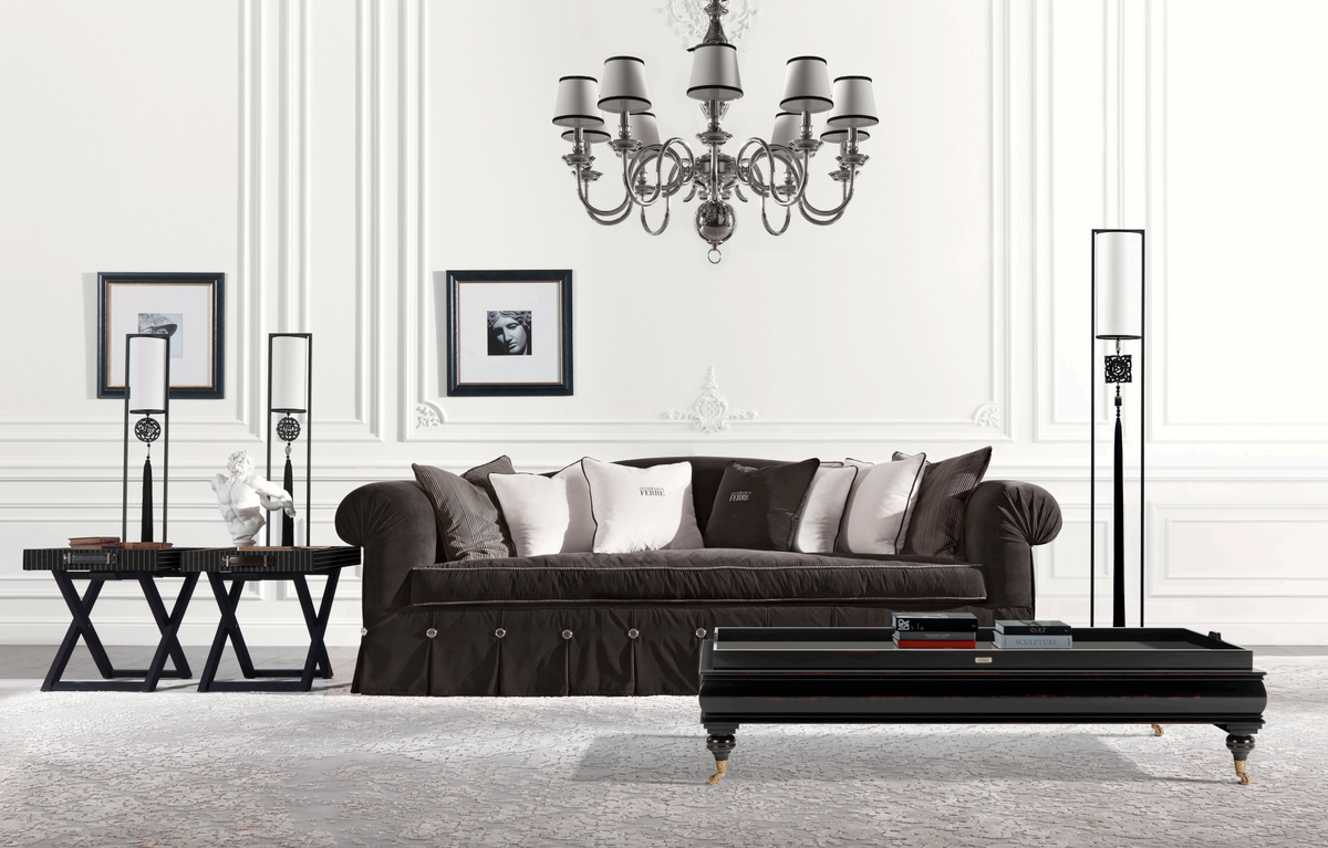 • Stolik Lambert marki Gianfranco Ferré Home posiada konstrukcję z drewna lipowego oraz polerowane mosiężne kółka. Wykończenie w kolorze czarnym lakierowanym.