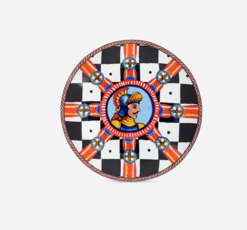 - Porcelanowy zestaw do cappuccino Dolce&Gabbana z kolekcji Carretto Siciliano, nawiązuję kolorystyką do sycylijskiego folkloru. Posiada ręcznie złocone krawędzie, logo na spodzie oraz lekko wypukłe detale, dzięki zastosowaniu przezroczystego szkliwa.