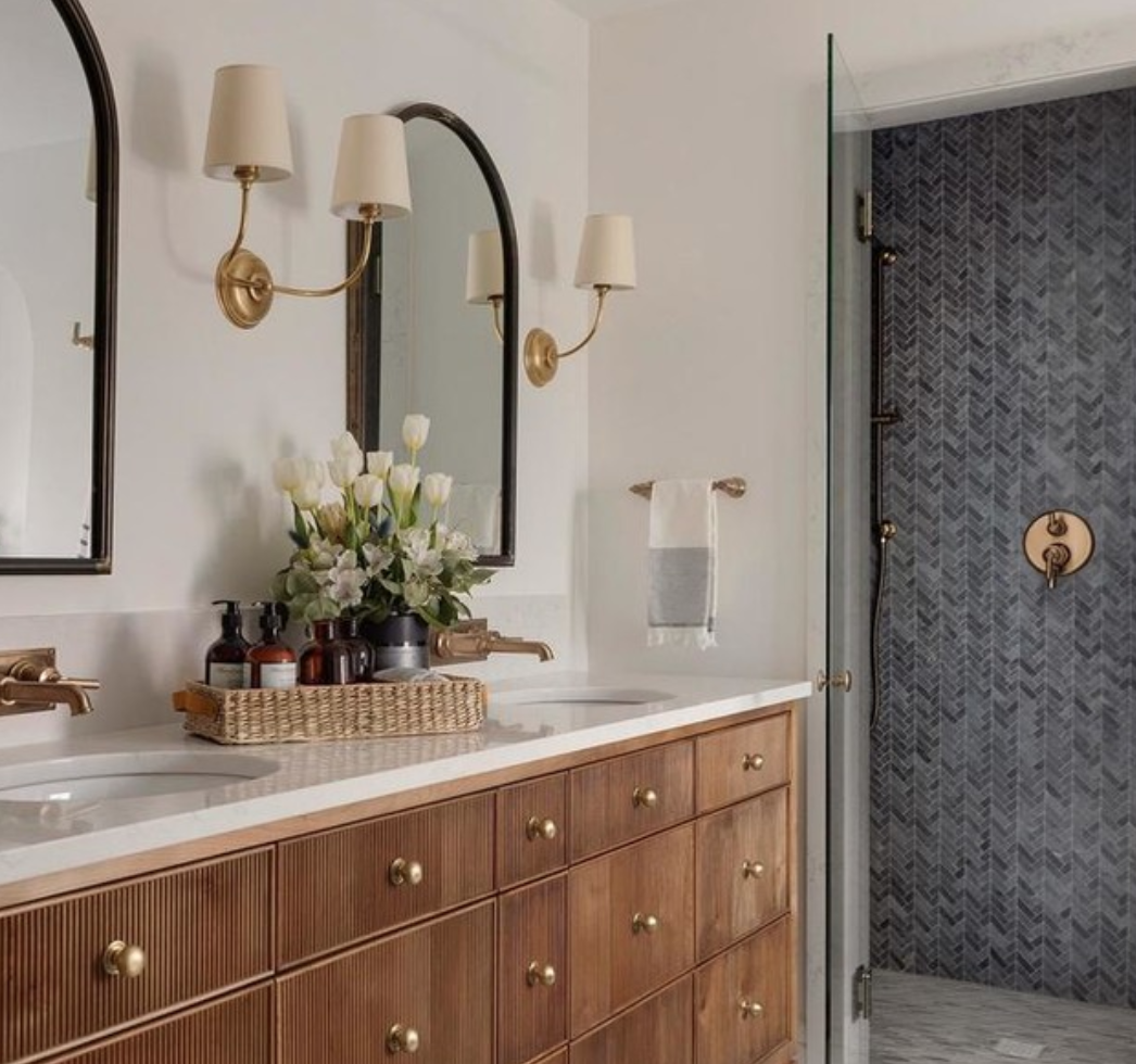 - Kinkiet dwuramienny Vendome projektu Thomas O'Brien marki Visual Comfort w ręcznie szczotkowanym mosiądzu z lnianymi abażurami.