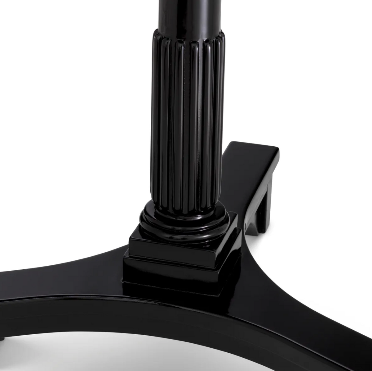 - Stolik boczny Roentgen marki Eichholtz w woskowanym, czarnym wykończeniu z ażurowym blatem i żłobkowaną podstawą w kształcie kolumny, wyglądem nawiązuje do swojego historycznego poprzednika.