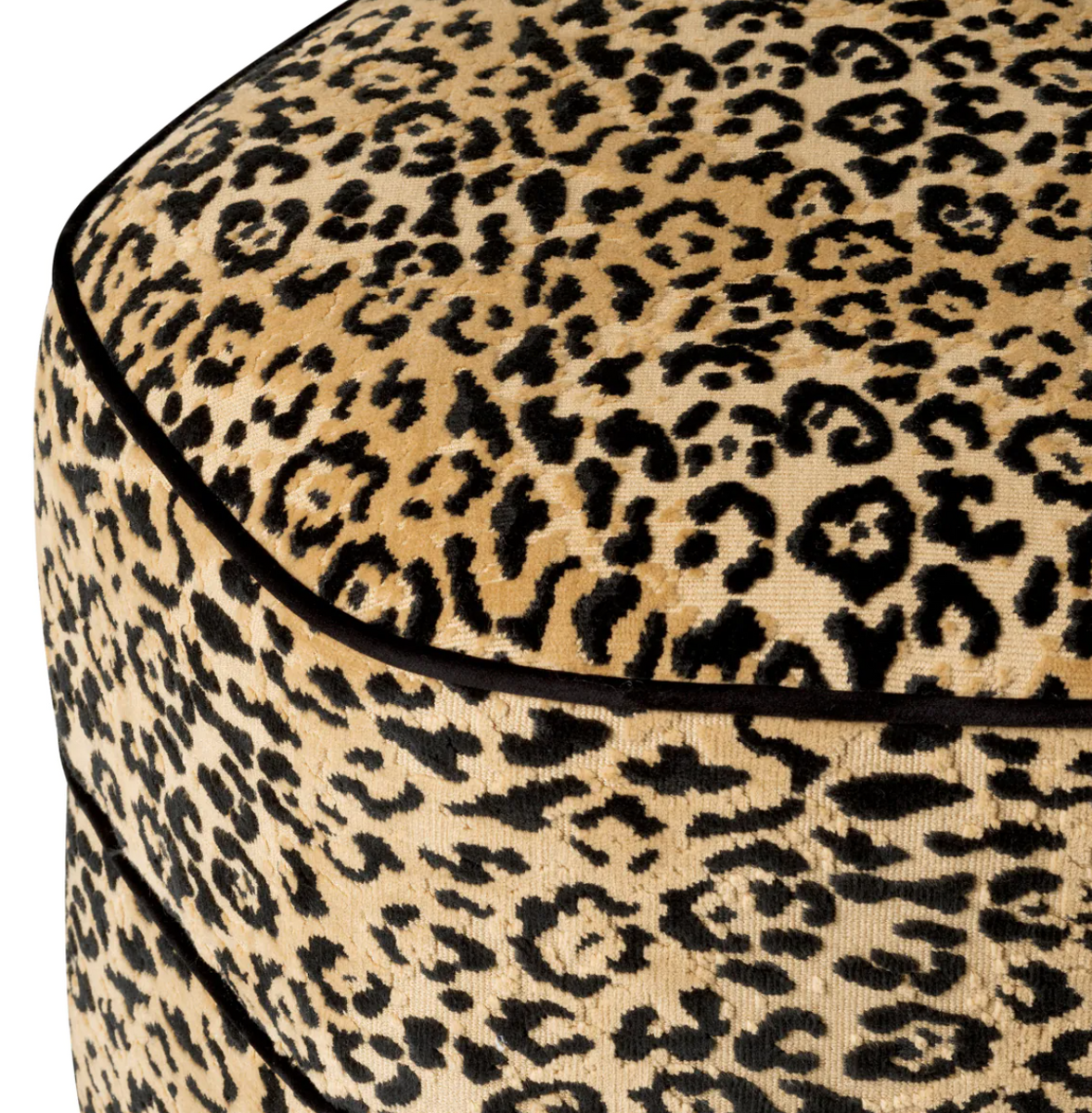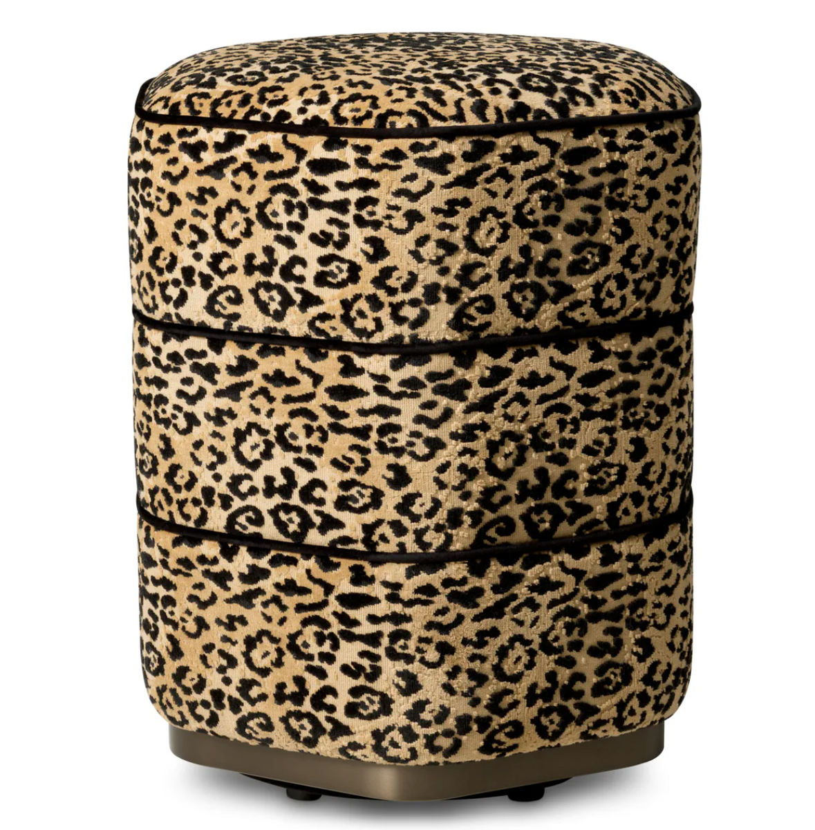 Puf Roosevelt marki Eichholtz tapicerowany tkaniną bernard leopard camel, sadzony na obrotowej podstawie z bogatym brązowym wykończeniem, łączy komfort z nutą figlarnej elegancji. Skład tkaniny: 82% bawełna | 18% poliester. Wymiary: szer. 46 x głęb. 43 x wys. 54 cm