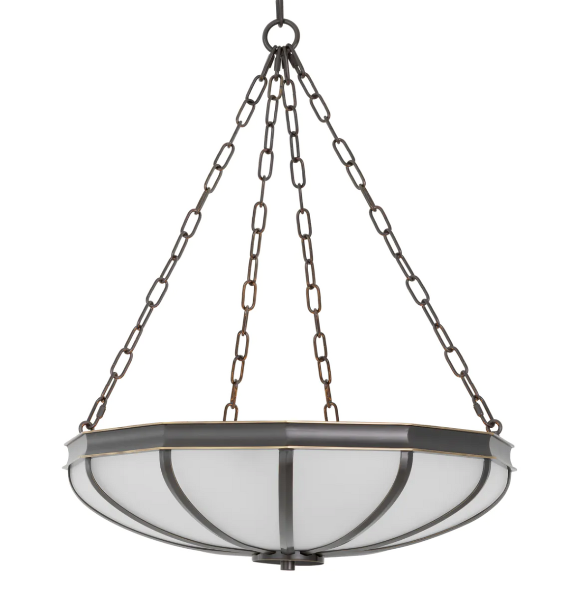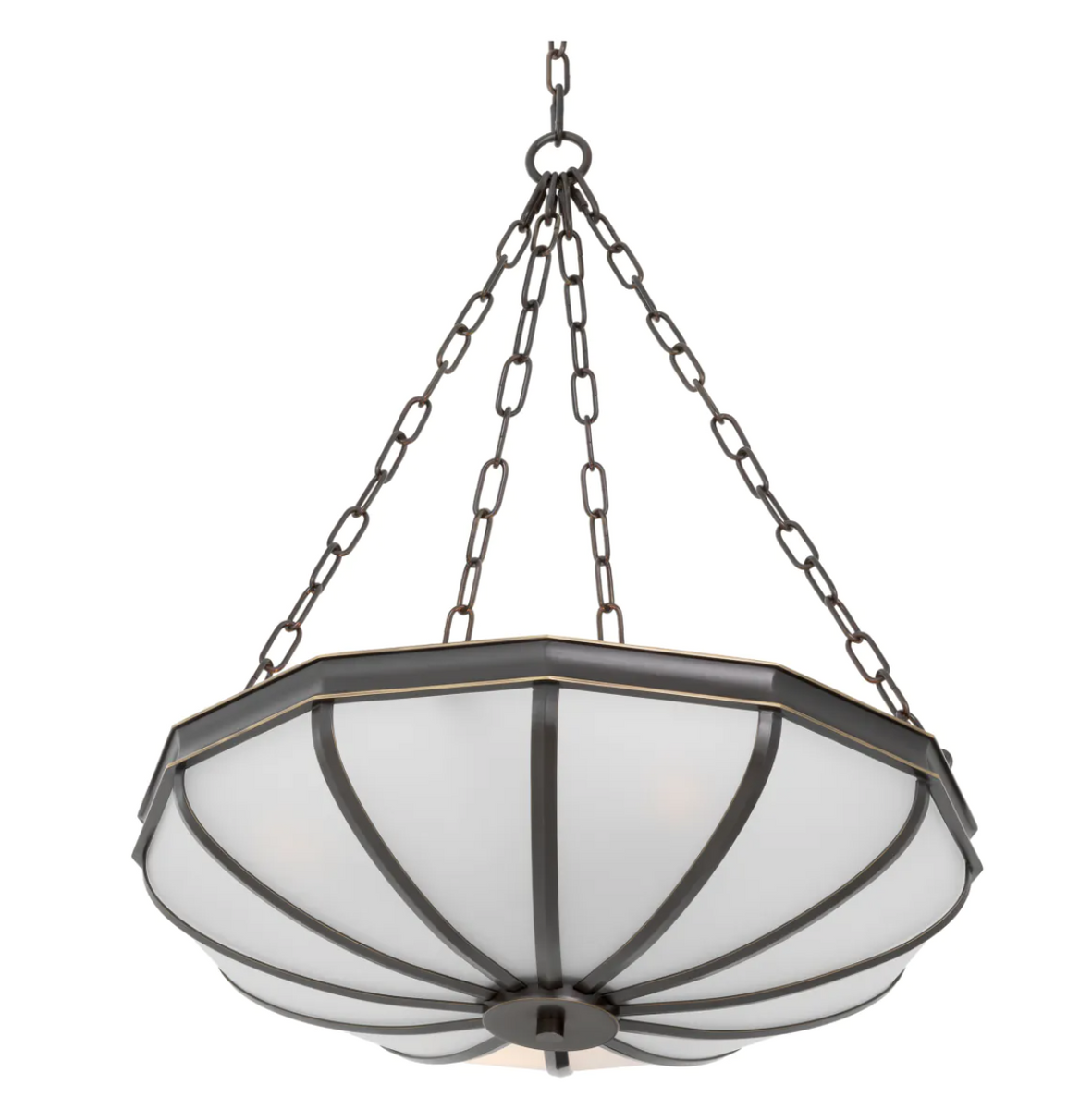 Lampa wisząca Jenkins S marki Eichholtz z brązowymi akcentami i eleganckim białym szkłem, inspirowana kultowym elementem oświetleniowym zdobiącym Wielką Salę Metropolitan Museum of Art. Wymiary: szer. 60 | głęb. 60 | wys. 16,5 cm