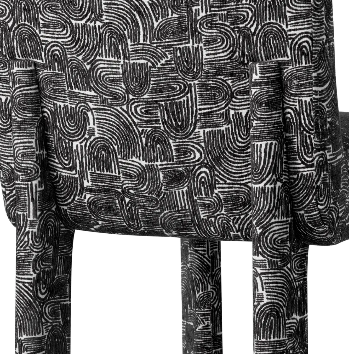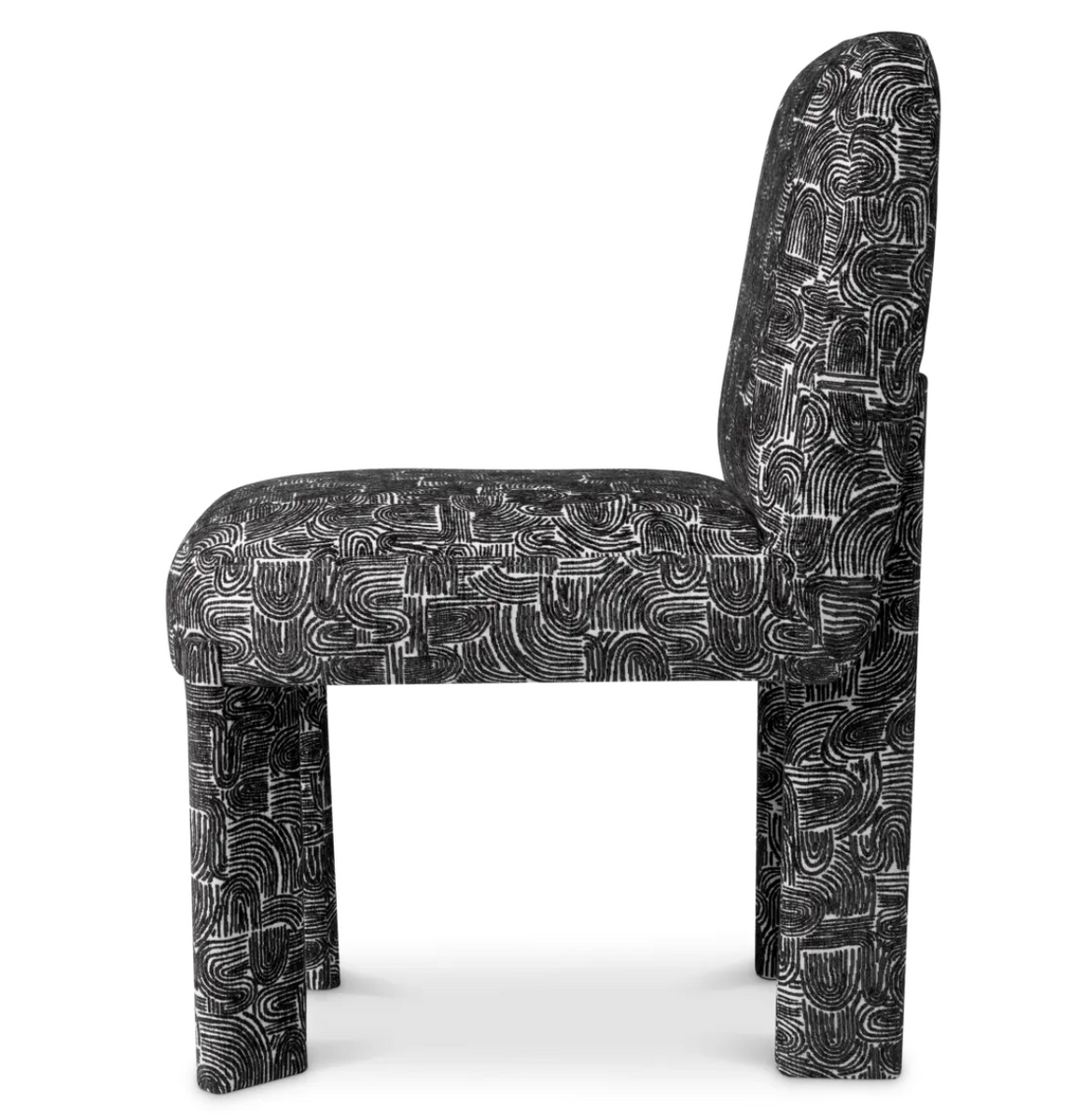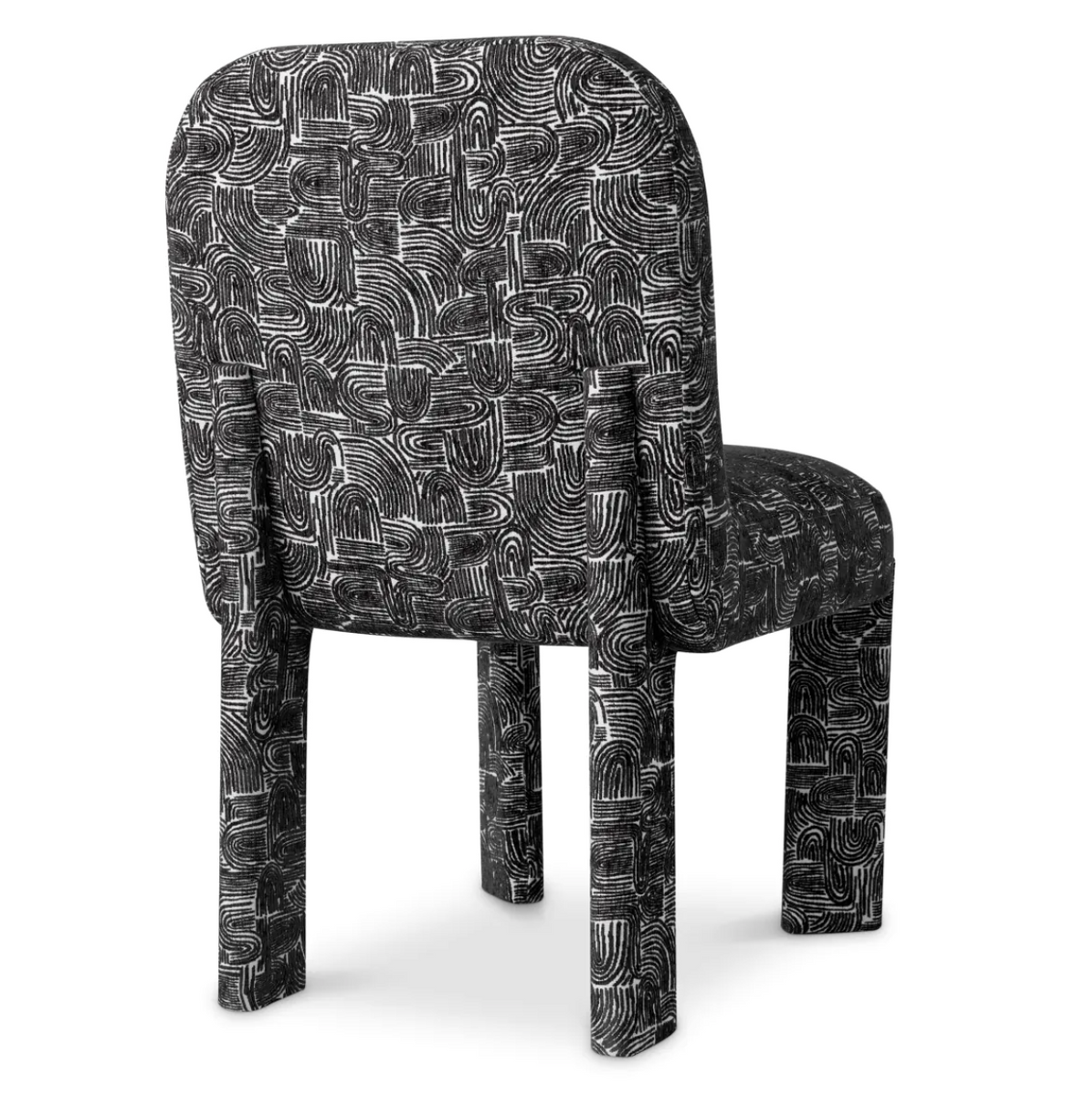 • Krzesło Magnus marki Eichholtz w czarno-białej tkaninie Solent, jego smukła sylwetka i monochromatyczna paleta barw tworzą równowagę wizualną, ucieleśniając wyrafinowaną nowoczesność.