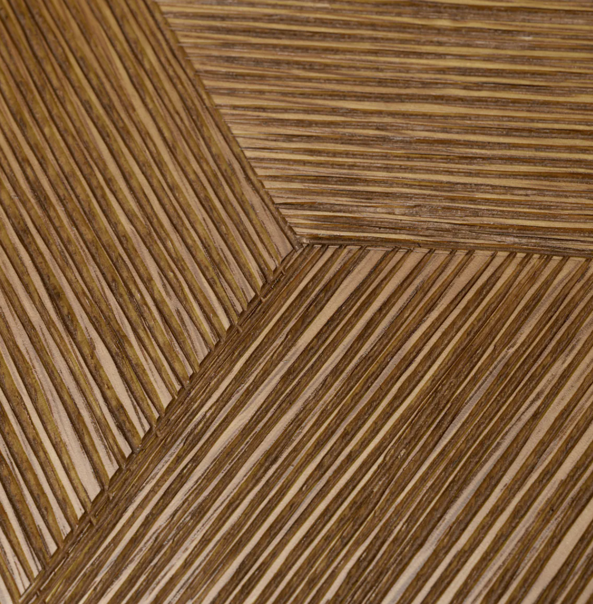 - Stolik boczny Velutto marki Eichholtz w karmelowym fornirze dębowym z detalami w szczotkowanym mosiądzu, oferuje wyrafinowany kontrast ciepłych odcieni drewna i lśniącego metalu.