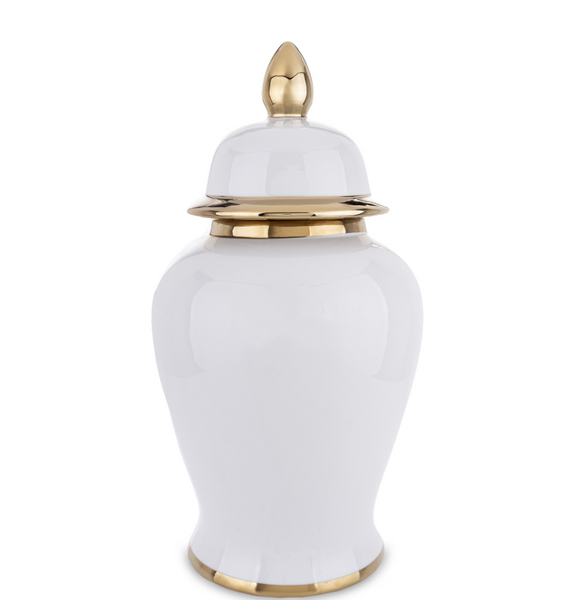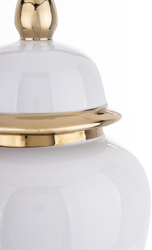 Waza ceramiczna White Gold Classic to kwintesencja elegancji i minimalizmu. Gładka biała ceramika połączona z subtelnymi złotymi detalami tworzy luksusową, ponadczasową formę idealną do wnętrz klasycznych, glamour i nowoczesnych. Wymiary: 46 x 23 x 23 cm