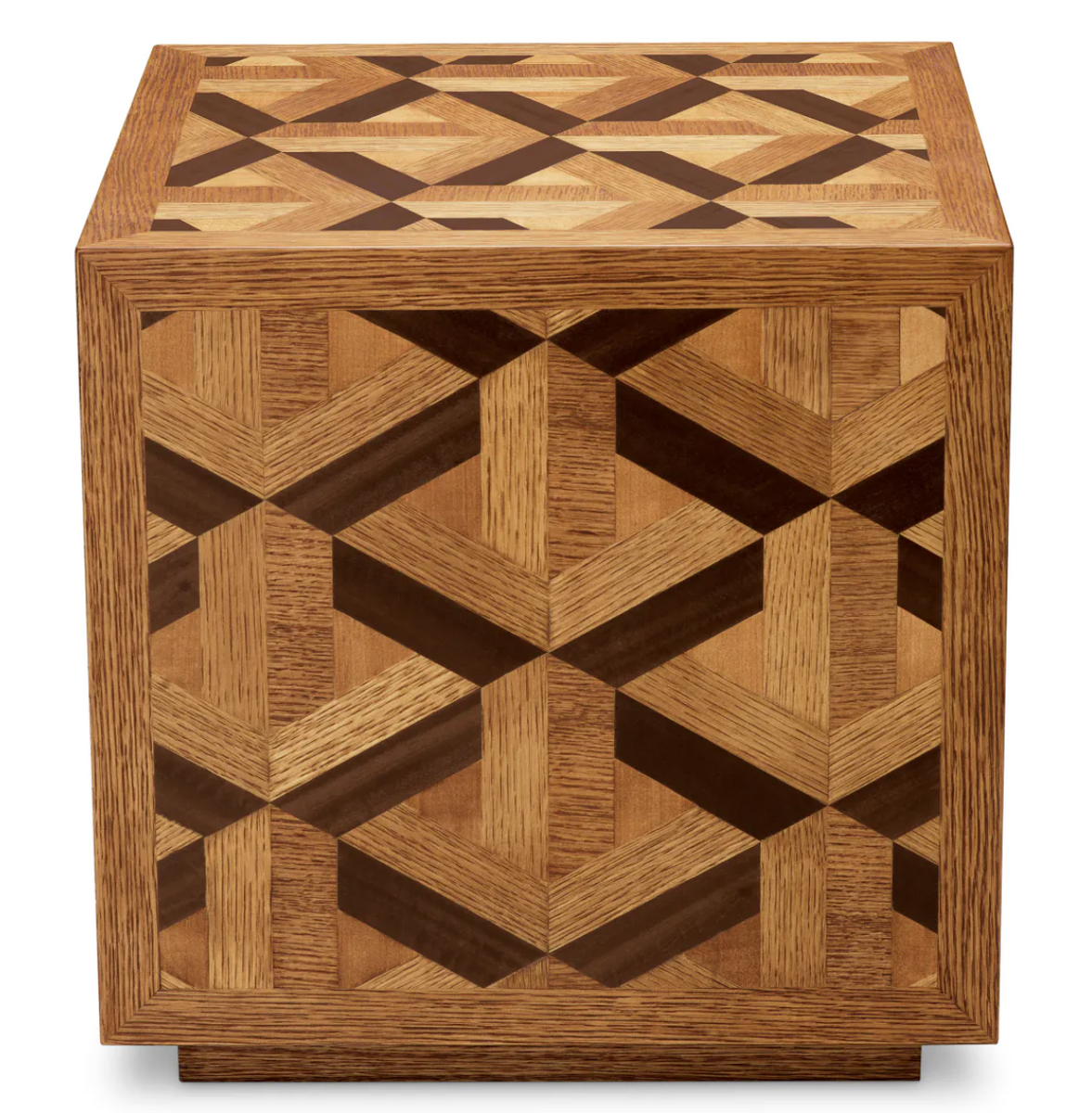 Stolik boczny Rubicon marki Eichholtz wykonany w procesie wycinania laserowo pasków forniru, które są ręcznie montowane, prasowane, łączone i bezszwowo nakładane, odzwierciedla prawdziwy kunszt rzemieślniczy. Wymiary: dł. 50 | szer. 50 | wys. 50 cm
