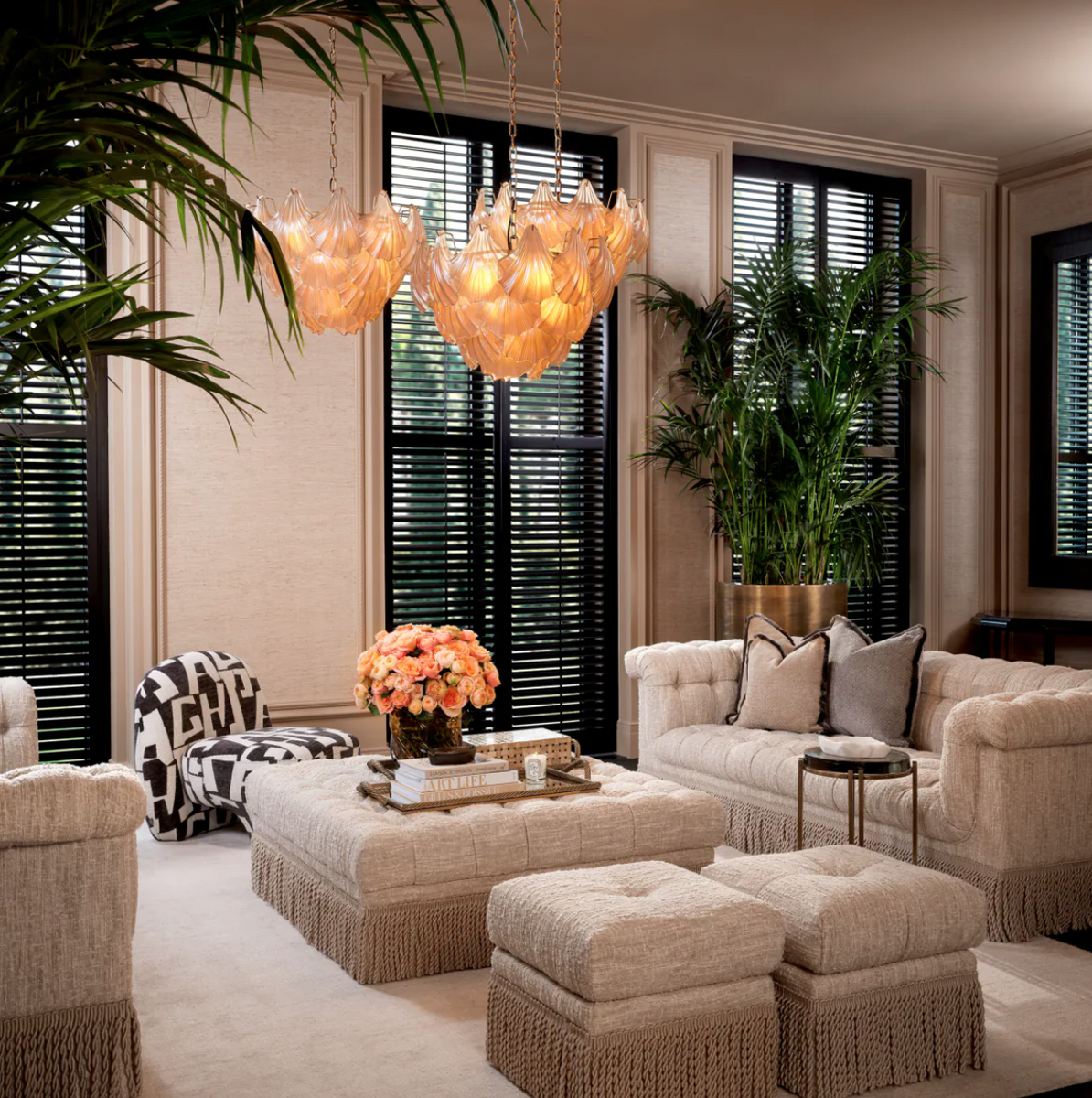 Puf Dorantes Small marki Eichholtz pokryty tkaniną Bouclé sonata w kolorze kremowym, frędzle na krawędziach dodają mu nuty kapryśnego charakteru, tworząc niepowtarzalny design. Wymiary: szer. 53 | gł. 53 | wys. 47 cm