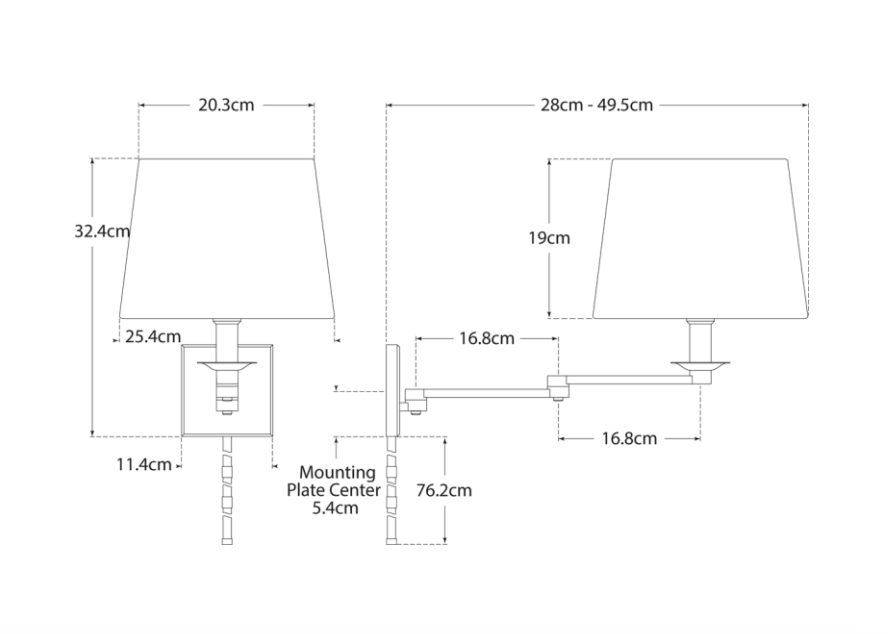 Kinkiet Evans Swing Arm marki Ralph Lauren Home z litego mosiądzu, charakteryzuje się ściętą podstawą i otwartym od góry abażurem z bawełnianego perkalu. Posiada wbudowany ściemniacz i wysuwane ramię. Wymiary: wys. 32,4 x szer. 25,4 cm x wysięg: 27,9 cm - 49,5 cm