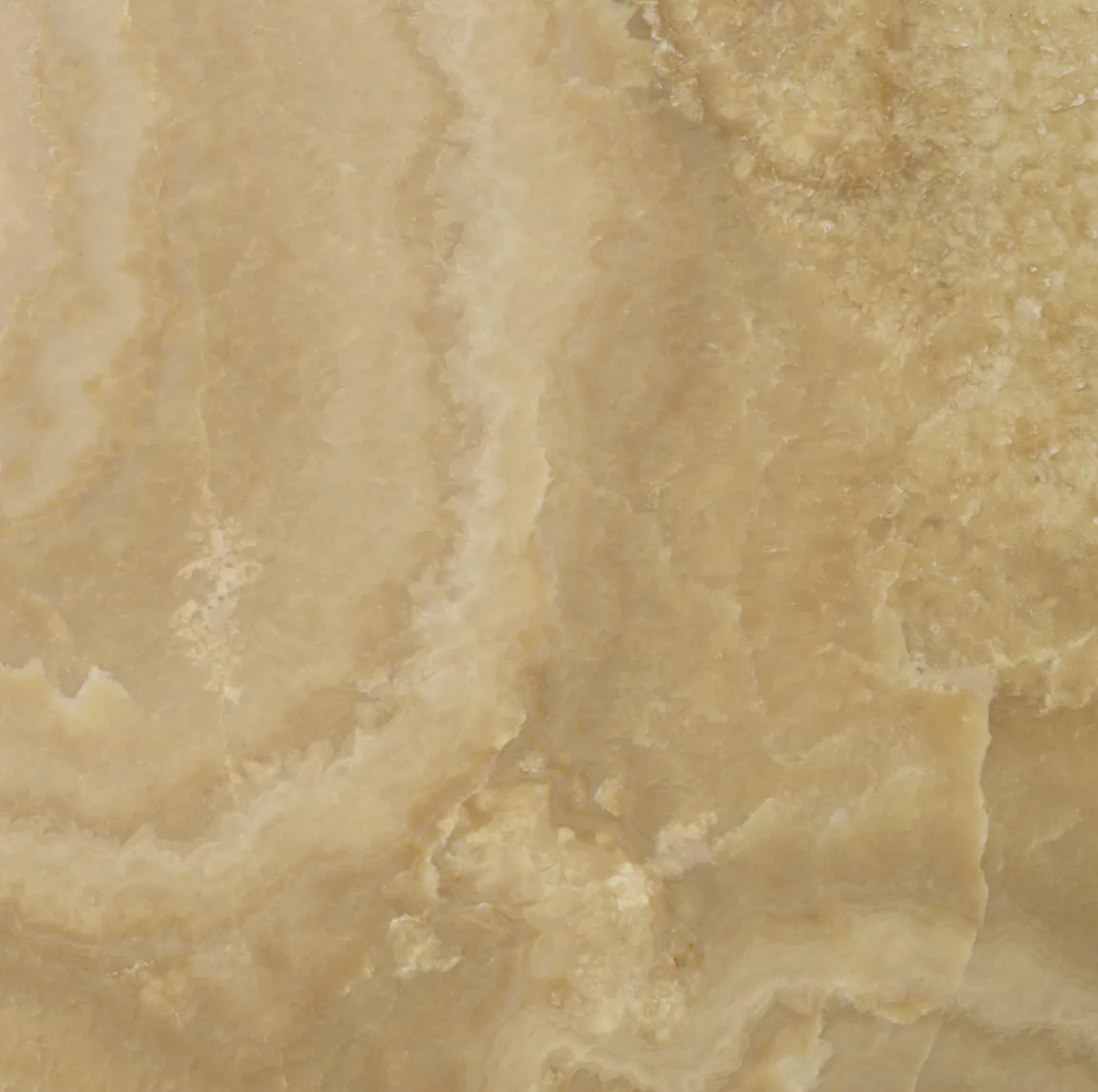 Stolik kawowy Portofino S marki Eichholtz z onyksowym blatem i smukłymi, zwężającymi się nogami. Kremowa powierzchnia onyksu ma miękkie, płynne usłojenie i świetlistą głębią, która odbija światło. Wymiary: dł. 83 | szer. 69,5 | wys. 27,5 cm
