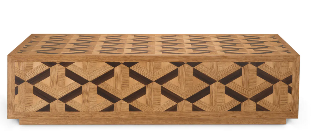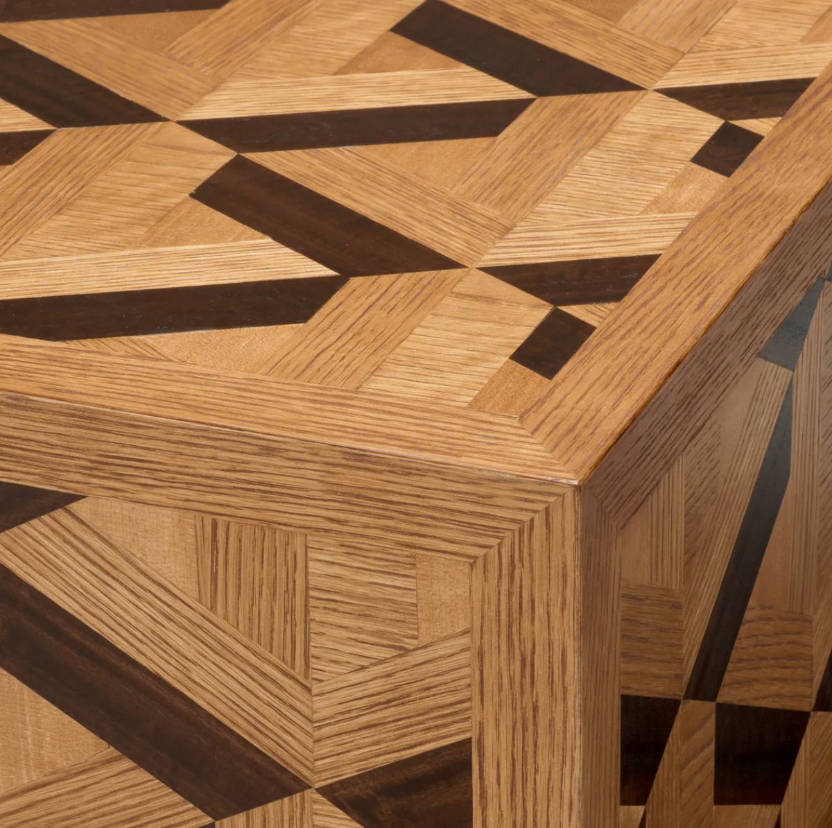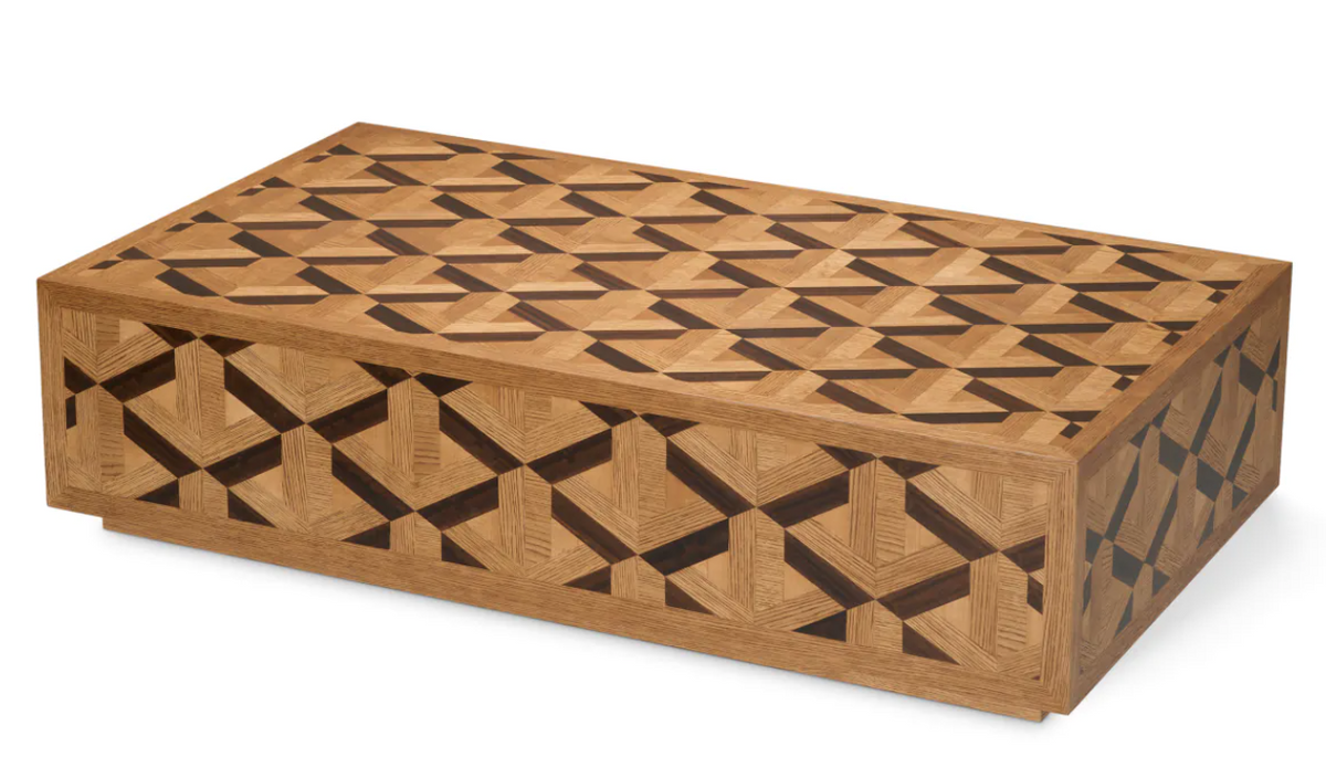 - Stolik kawowy Rubicon marki Eichholtz wykonany w procesie wycinania laserowo pasków forniru, które są ręcznie montowane, prasowane, łączone i bezszwowo nakładane, odzwierciedla prawdziwy kunszt rzemieślniczy.