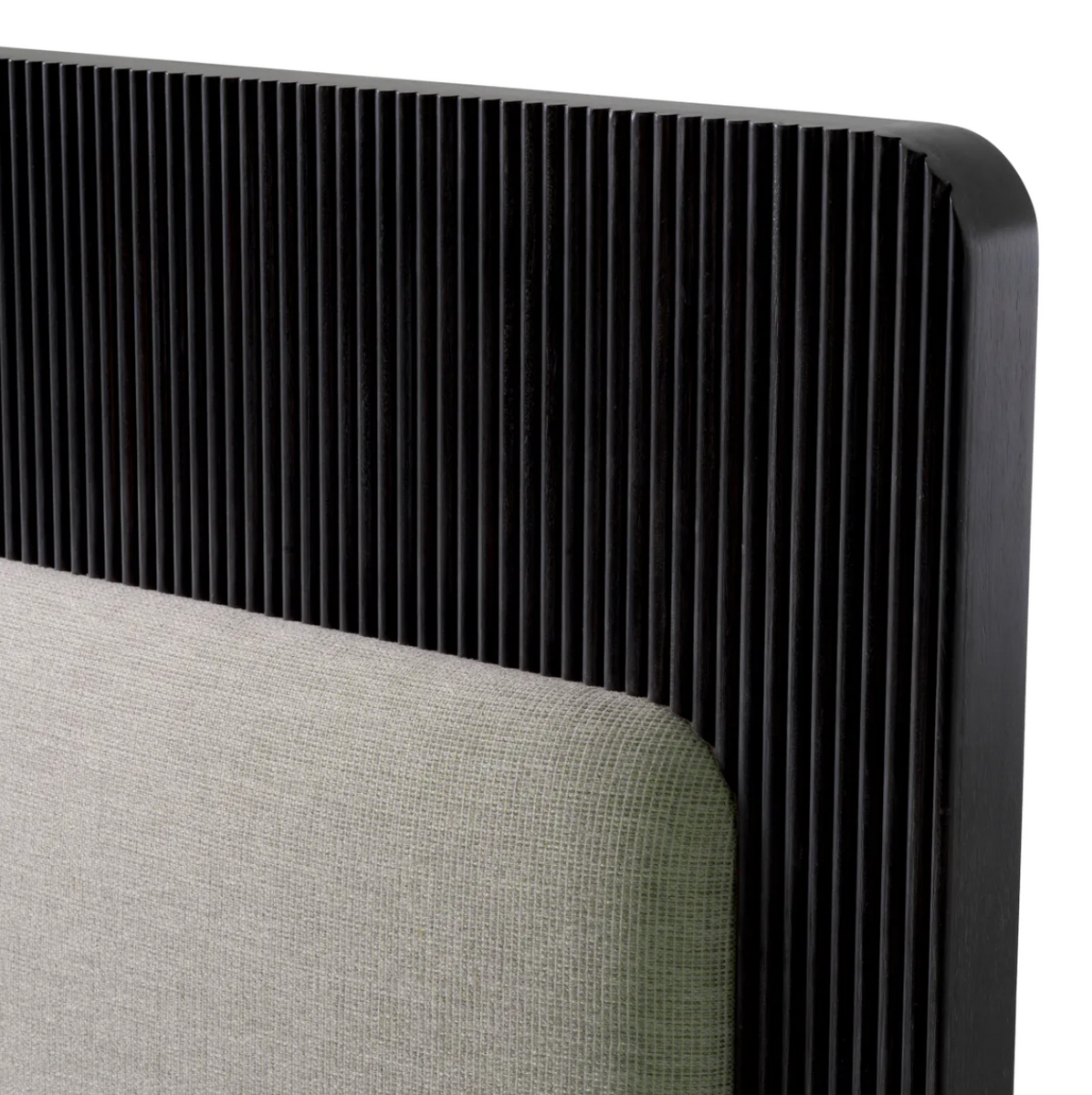 - Rama łóżka Dimitrios marki Eichholtz z grafitowego, prążkowanego drewna mahoniowego, uzupełnionego naturalną tkaniną Durini.