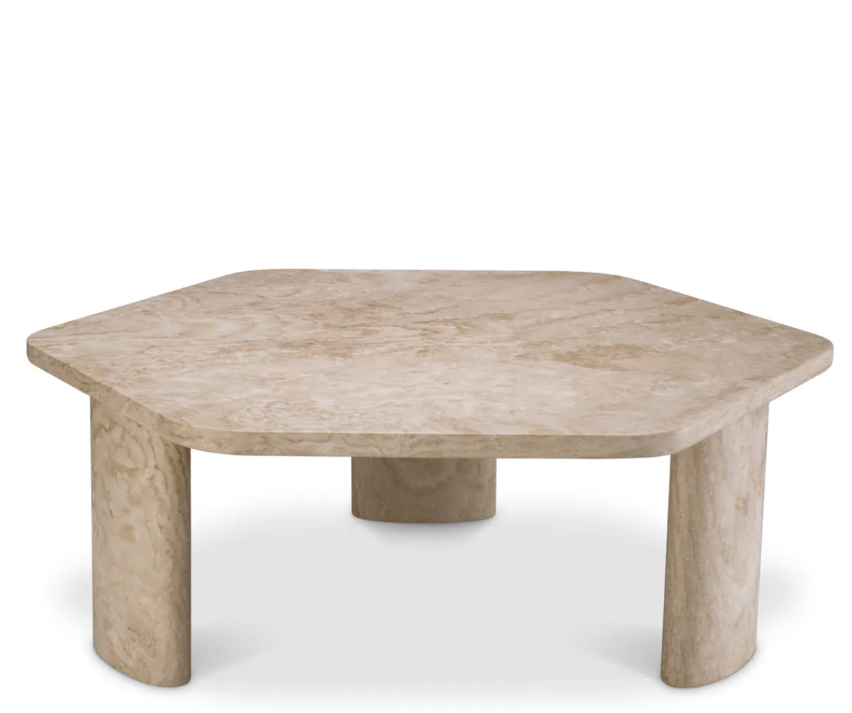 - Stolik kawowy Zenitho marki Eichholtz wykonany z litego trawertynu zachwyca naturalnym użyleniem kamienia i ciepłymi, ziemistymi tonami.