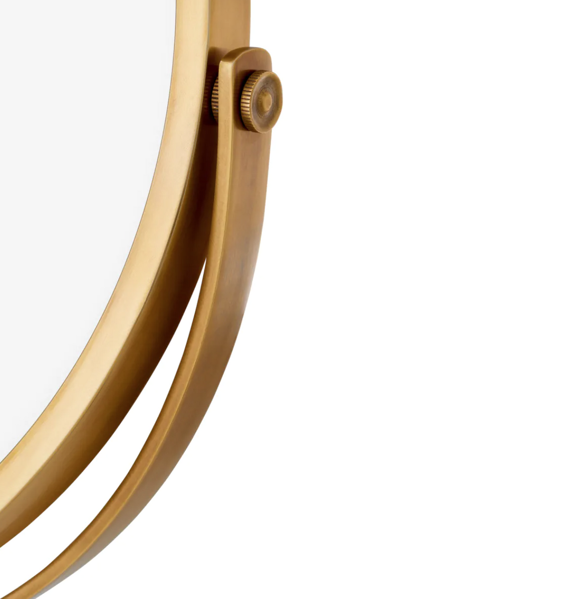 Lustro stołowe Jovanni marki Eichholtz łączy elegancką marmurową podstawę z mosiężnym wykończeniem vintage, tworząc stylowy i funkcjonalny dodatek do wnętrza. Wyposażone w podwójne zwierciadło – z jednej strony standardowe, z drugiej powiększające – zapewnia wygodę użytkowania przy zachowaniu luksusowego charakteru i ponadczasowej estetyki. Wymiary: dł. 42,5 | szer.20 | wys. 63 cm