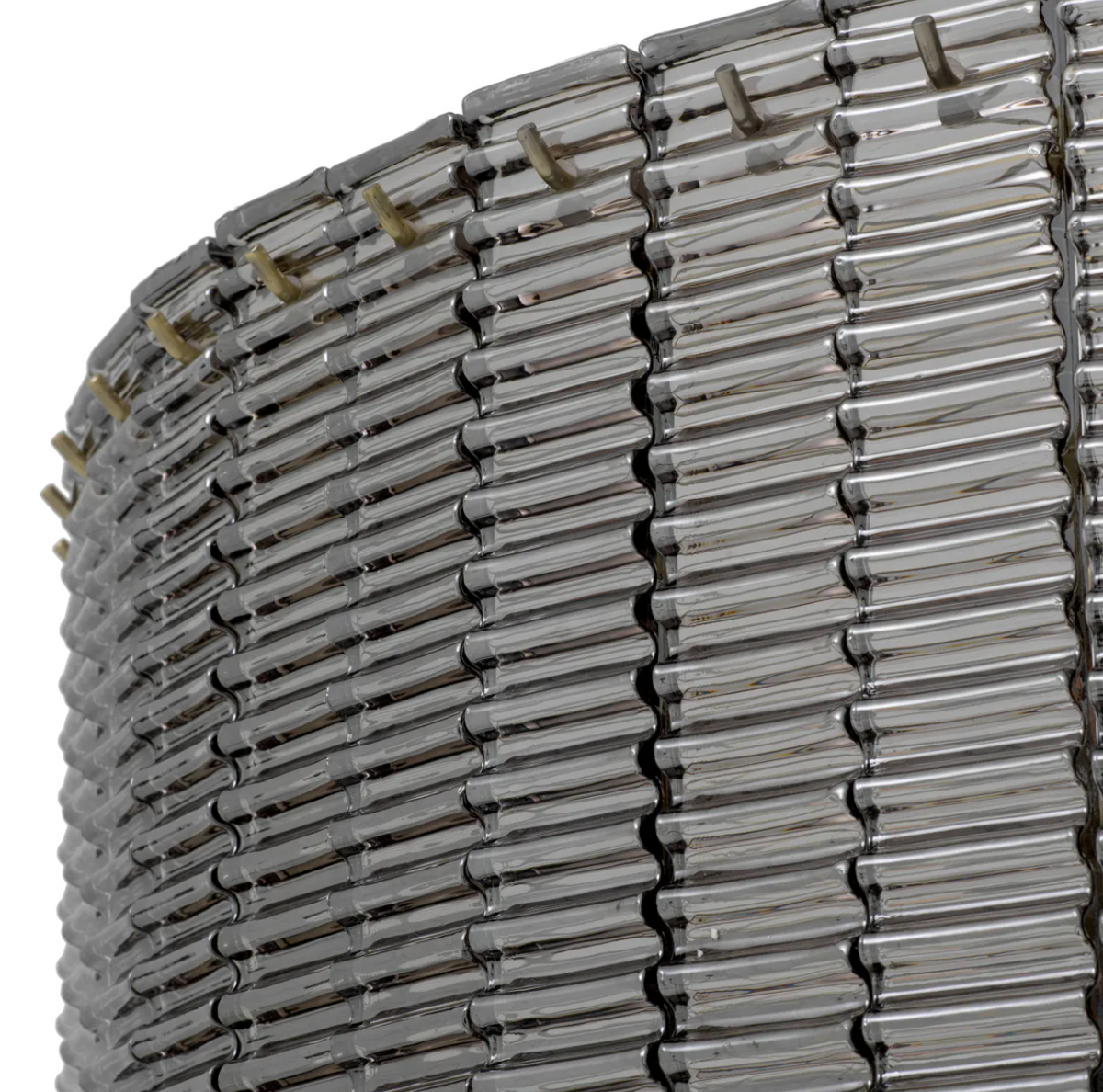 - Żyrandol Imperial Double marki Eichholtz ze szczotkowanego mosiądzu, ozdobiony dymionym szkłem, oddaje ducha starożytnej greckiej architektury, łącząc historyczny urok z nowoczesną finezją.