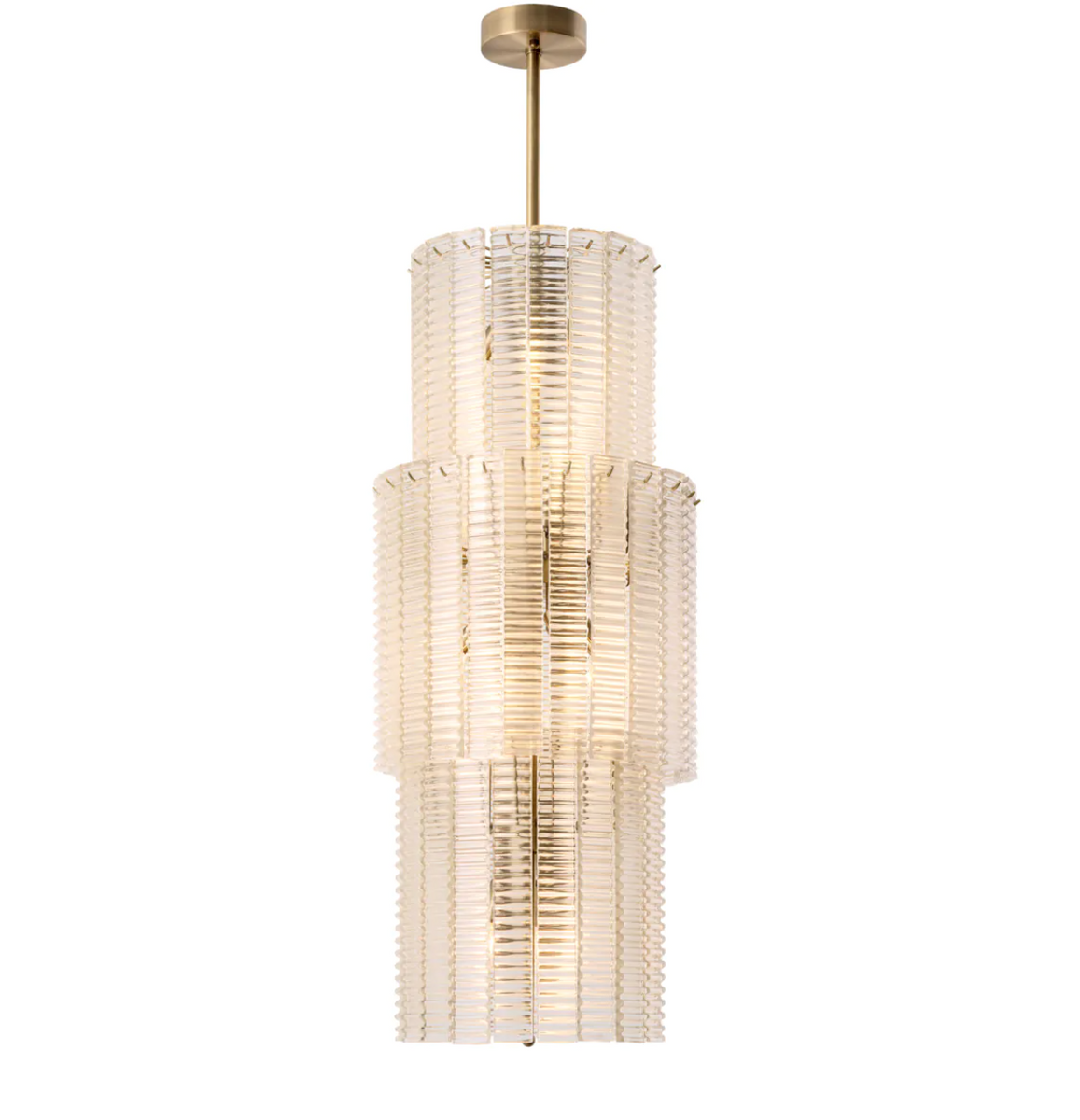 Żyrandol Imperial marki Eichholtz ze szczotkowanego mosiądzu, ozdobiony przezroczystym szkłem, oddaje ducha starożytnej greckiej architektury, łącząc historyczny urok z nowoczesną finezją. Wymiary: Ø 44 | wys.106 cm
