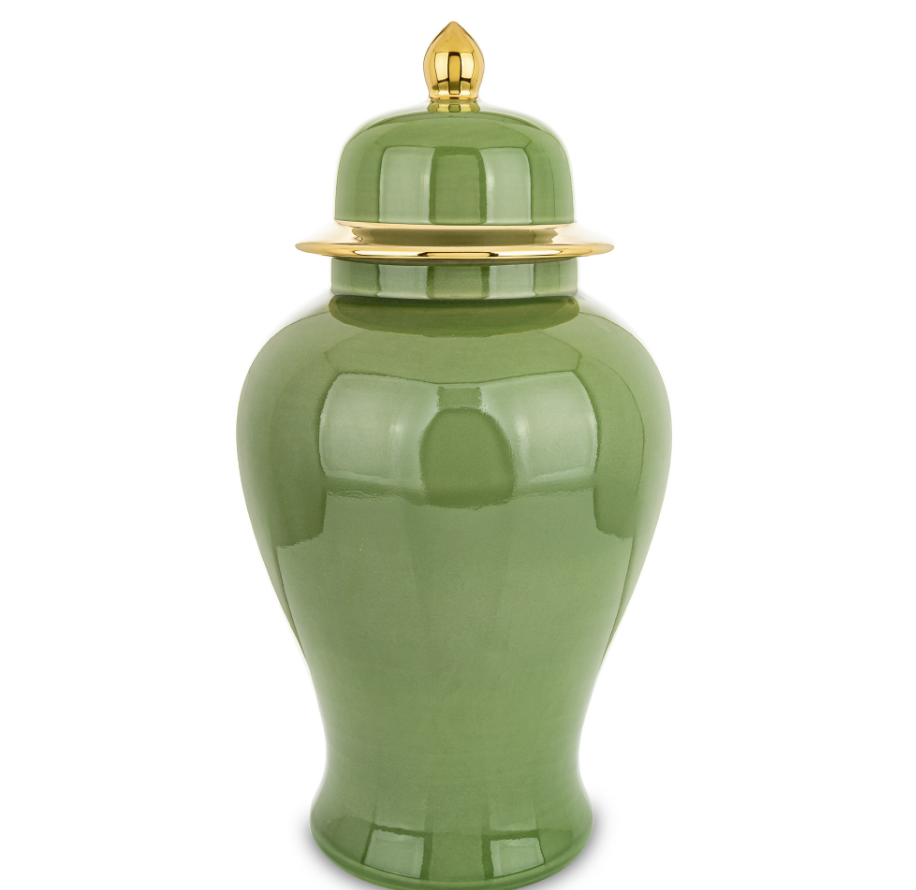 - Waza Olive Gold Jar Large to elegancka forma inspirowana klasyczną porcelaną orientalną. Głęboka oliwkowa zieleń w połączeniu ze złotymi detalami nadaje mu luksusowy i ponadczasowy charakter.