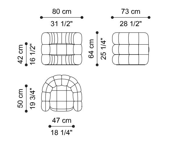 - Wymiary: dł. 80 x głęb. 73 x wys. 64 cm